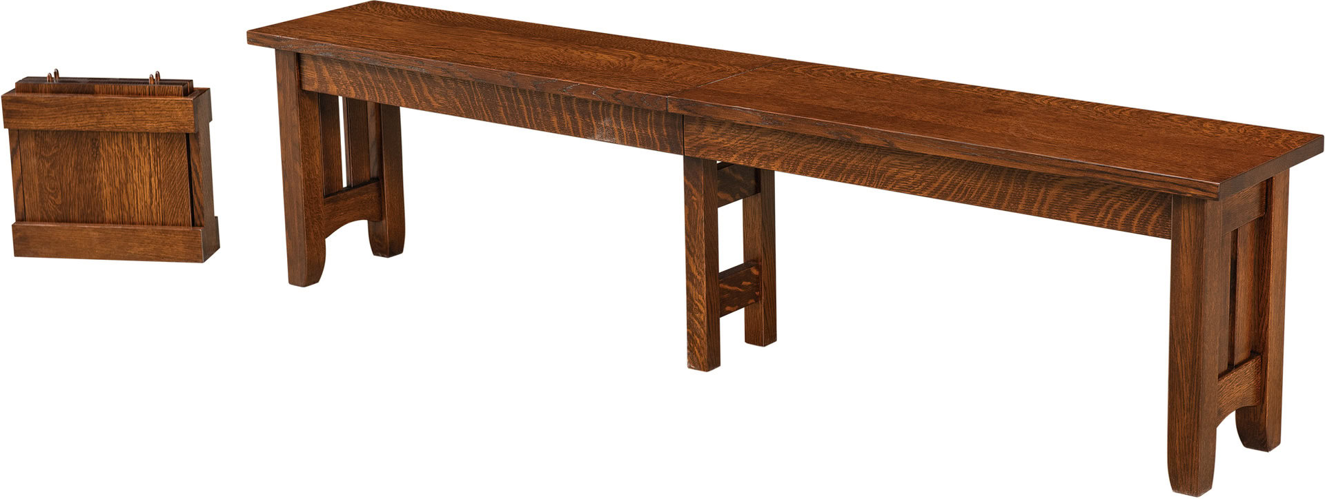 The slats at each end of the Galena Dining Bench along with the curved feature indicate that it’s part of the Galena family. So it complements the Galena dining table. Or any other of the fine dining tables from Weaver Furniture. Also, the solid hardwood bench is expandable –- accommodating up to four 12-inch leaves. The unit comes with a leaf storage box. Amish craftsmen build each bench. Also, they use top hardwoods. Like cherry, maple and quarter-sawn white oak (shown with FC-10901 Golden Brown stain). So the Galena Dining Bench is sturdy. Durable. Plus heirloom-quality! Ready to order? Click the “Customize this product” button below. Then, complete the “Customize Product” fields. Also click the “Get your customized quote” button. Or call 877-357-2106.