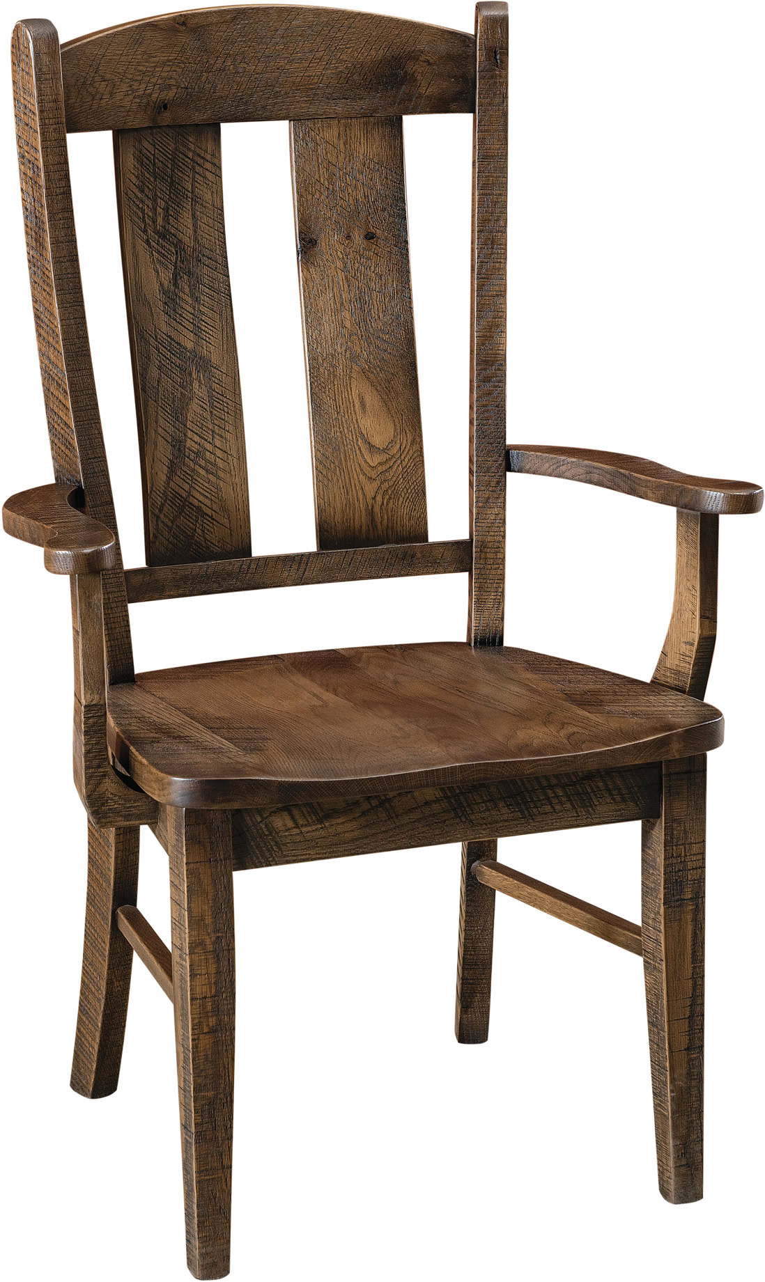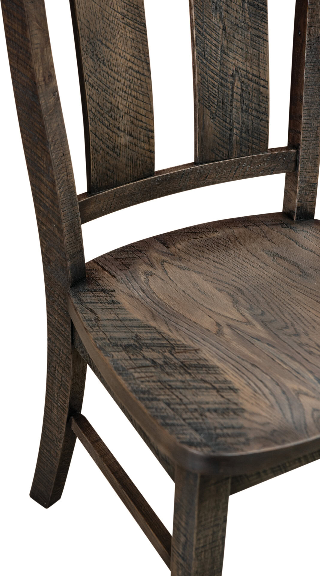 At first glance, you will notice the Gayle Chair has a rough design. One of the most rugged hardwoods is Rough Sawn White Oak. Additionally, Rough Sawn White Oak hardwood is as durable as they come. As you can see, the two slats in the back of the chair offer a simplistic view. In other words, these slats also offer comfortability, which is tough to find in a hardwood chair. Make a complete set of chairs by pair this side chair with two Gayle Arm Chairs. Other available styles for the Gayle Chair are swivel bar stool, stationary bar stool, and desk chair. Visit our Amish Dining Table’s if you wish to pair these chairs with a table.