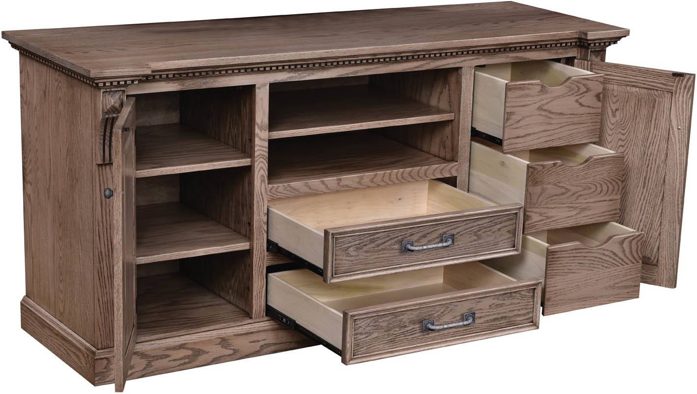 The Grand Manor TV Cabinet provides an ideal display for your television and ample media storage space!