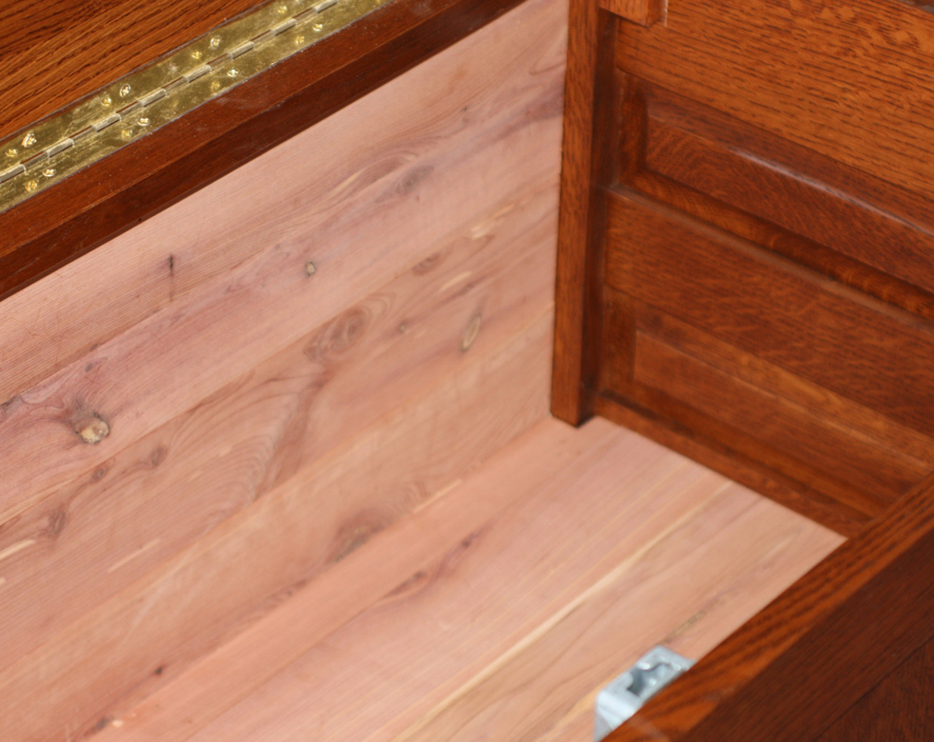 The Granny Mission Amish Blanket Chest features a series of panels along the side. Also, the chest is full of storage space. Cedar lines the back and bottom of the chest interior. Most of all, the chest is constructed out of solid hardwoods.