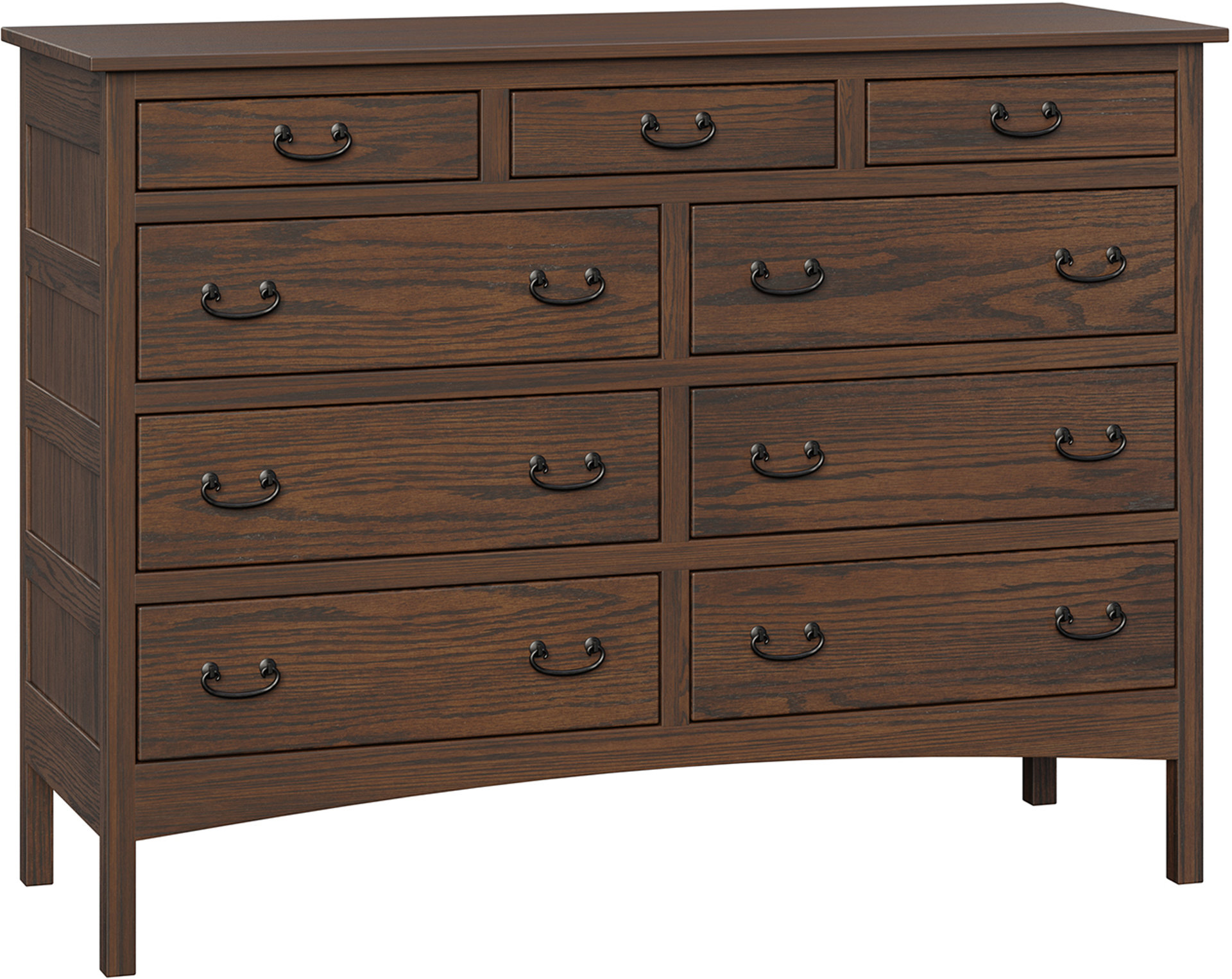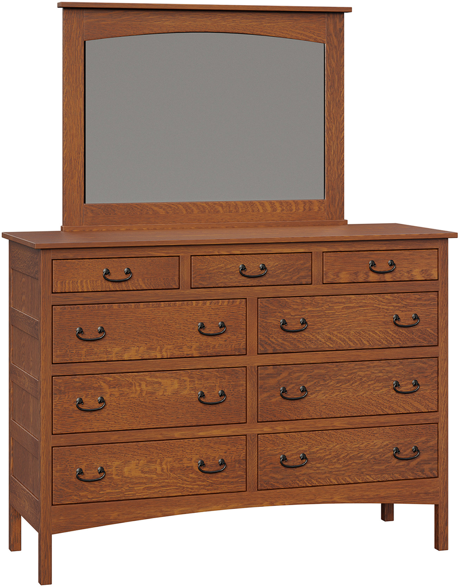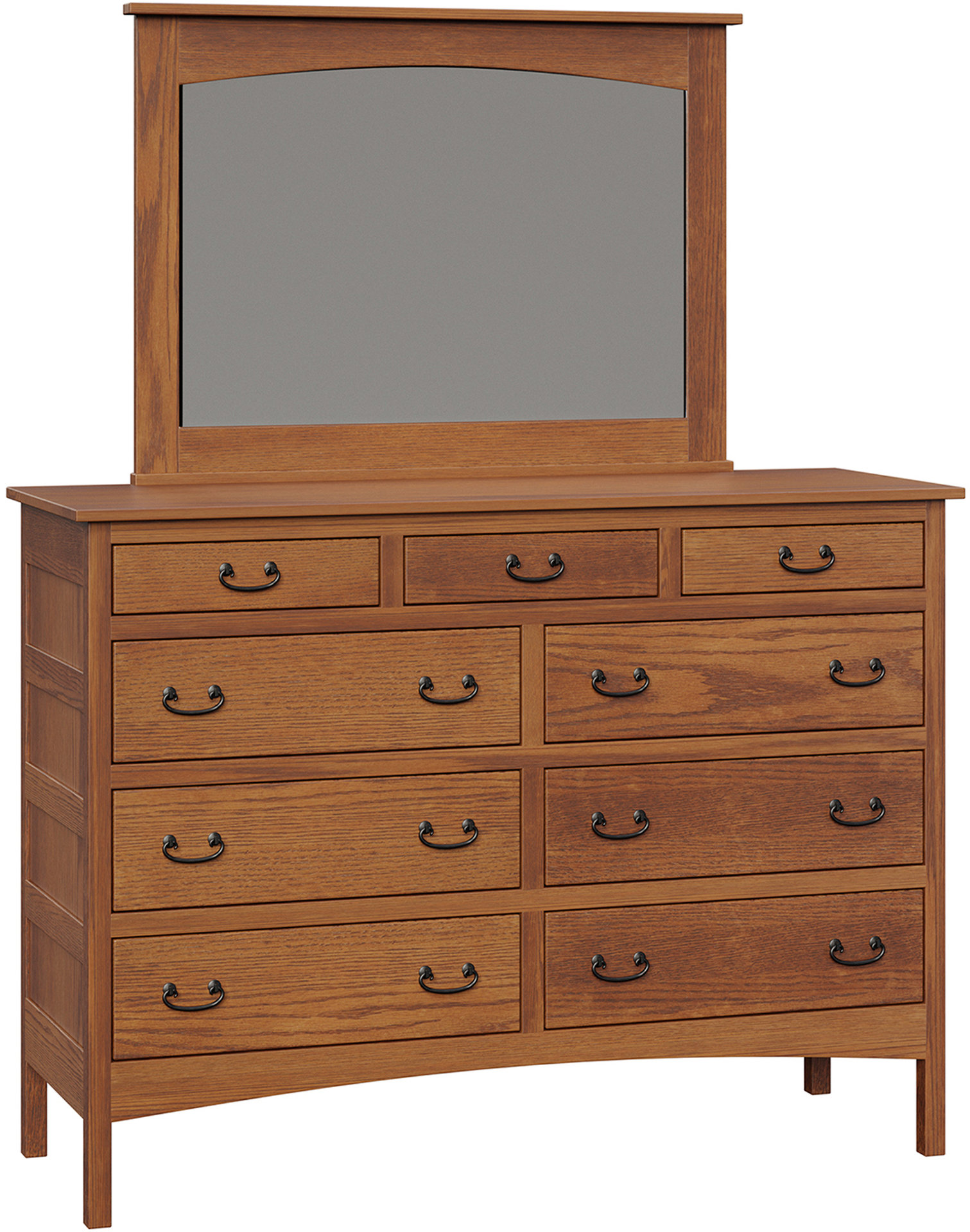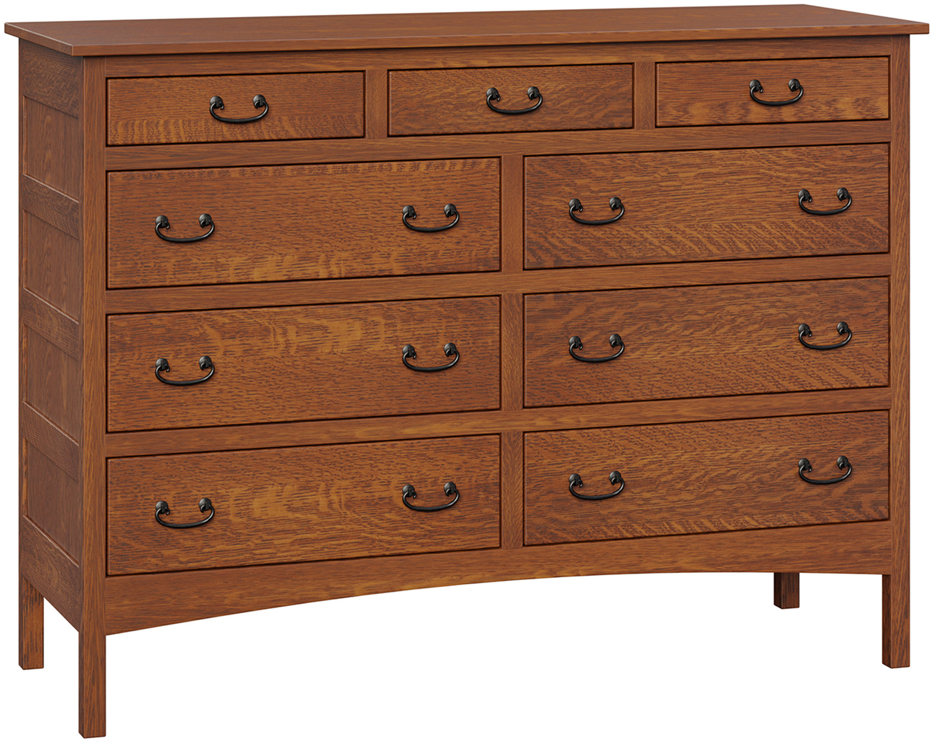 The Granny Mission Nine-Drawer Mule Dresser features lots of storage space. An attractive Mission design. Also solid hardwood Amish construction. Check out its clean lines and simple beauty. Because they mean the dresser will blend with your existing furniture. The drawers open full-extension. So you’ll enjoy easy access to everything. Even items at the back. While the dovetail drawer joints excel in strength. Amish artisans are the best in the Midwest. And they build each Granny Mission Nine-Drawer Mule Dresser. Also, they use top hardwoods. Like oak and cherry. So the dresser is beautiful. Sturdy. And heirloom-quality! To order, click the “Customize this product” button below. Then, complete the customization fields. Or call 877-357-2106.