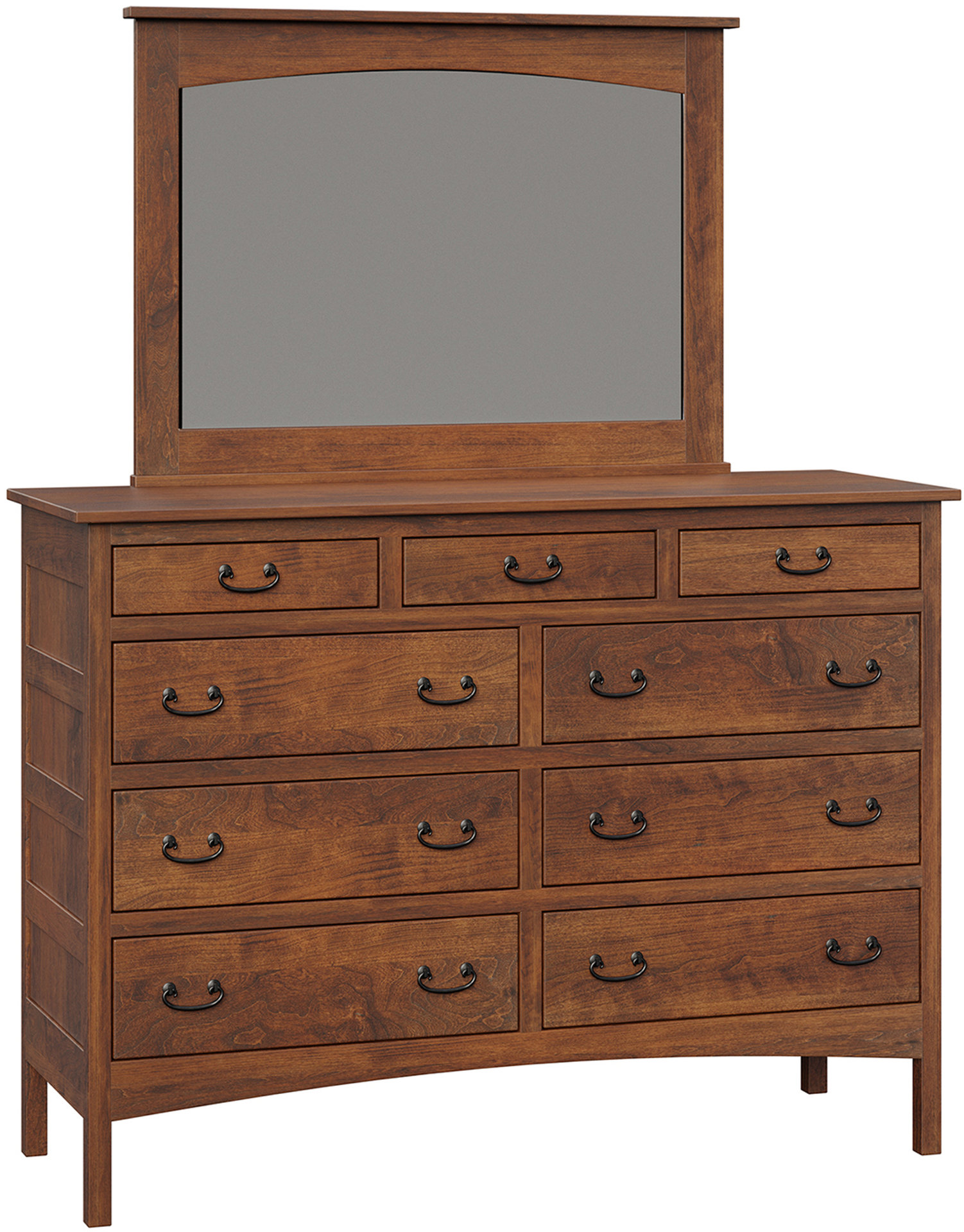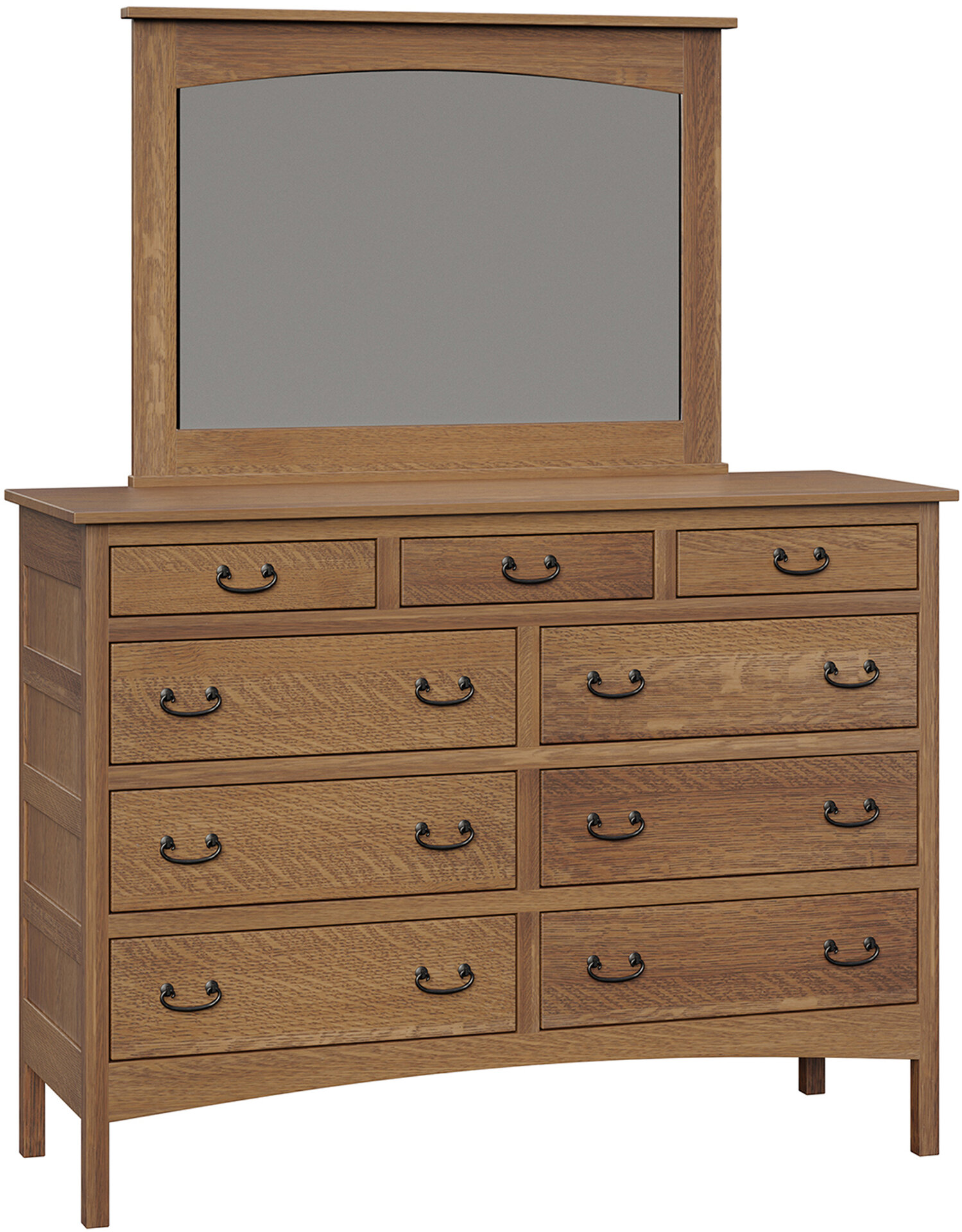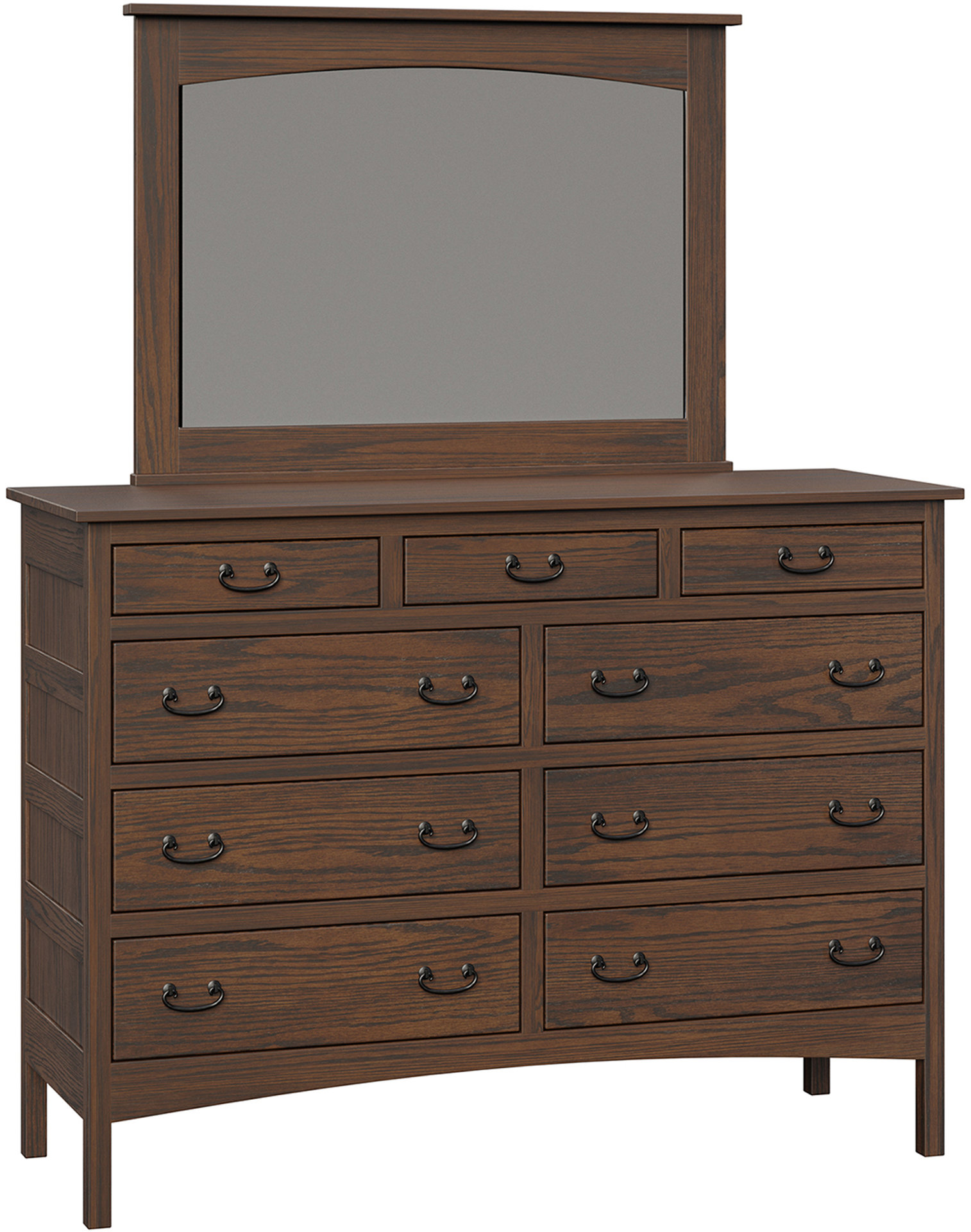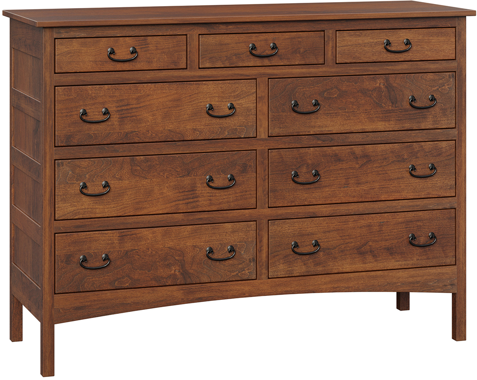 The Granny Mission Nine-Drawer Mule Dresser features lots of storage space. An attractive Mission design. Also solid hardwood Amish construction. Check out its clean lines and simple beauty. Because they mean the dresser will blend with your existing furniture. The drawers open full-extension. So you’ll enjoy easy access to everything. Even items at the back. While the dovetail drawer joints excel in strength. Amish artisans are the best in the Midwest. And they build each Granny Mission Nine-Drawer Mule Dresser. Also, they use top hardwoods. Like oak and cherry. So the dresser is beautiful. Sturdy. And heirloom-quality! To order, click the “Customize this product” button below. Then, complete the customization fields. Or call 877-357-2106.