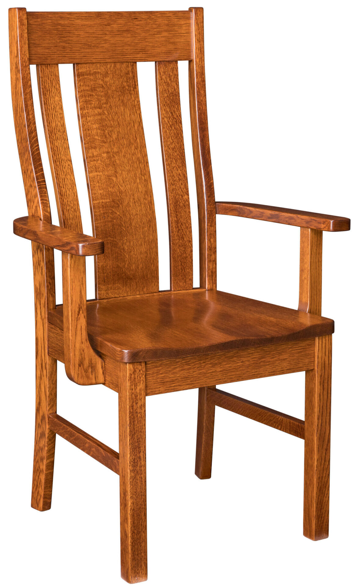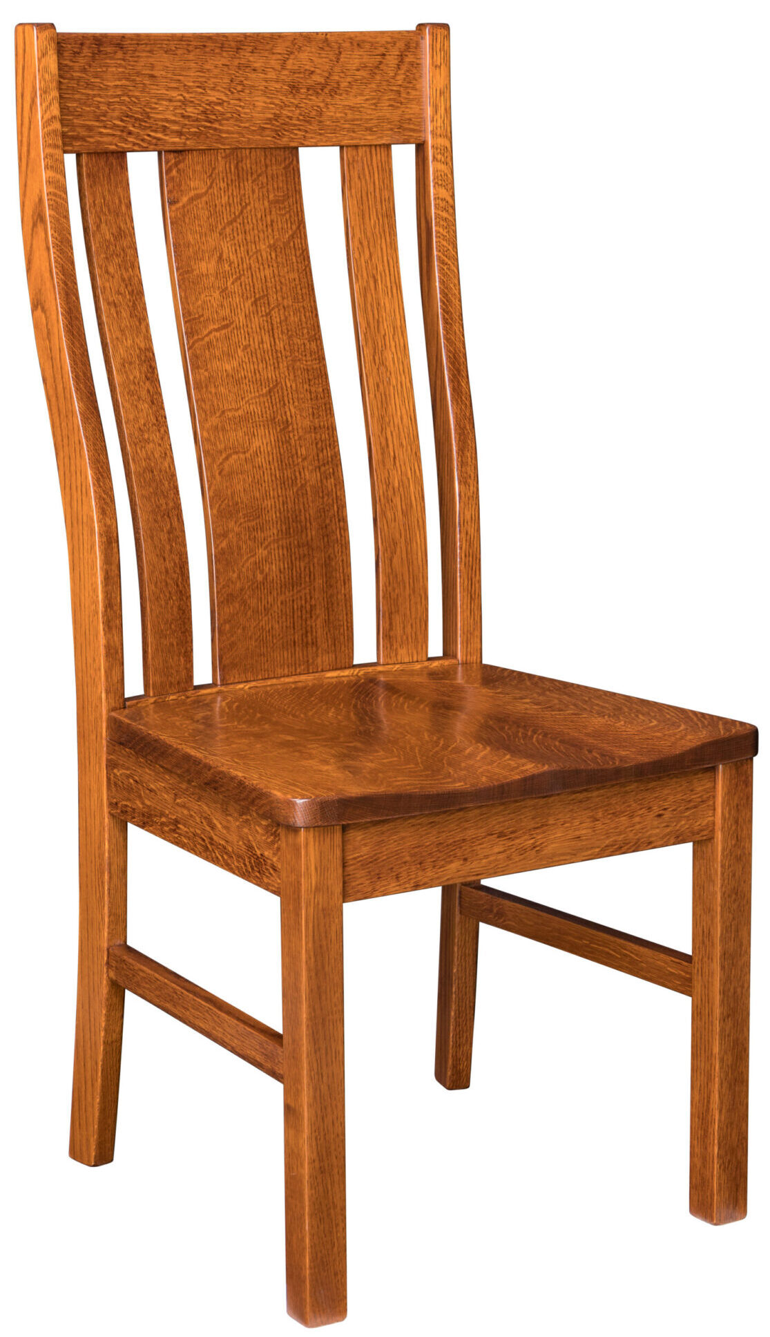 As traditional chairs go, the Gurnee Dining Chair represents the best in looks, comfort and durability. Indeed, the curved slats catch the eye — and deliver great lumbar support. While the scooped seat enhances comfort. For even more comfort, request an upholstered seat, finished in fabric or leather. Also, you may surround your dining table with side chairs and/or armchairs. Amish cabinetmakers — the best in the Midwest — build the chair. And they use top hardwoods like quarter-sawn white oak (shown with Michael’s Cherry Stain). No wonder the chair is so sturdy and heirloom-quality! Ready to order? Click the “Customize this product” button below. Then, fill out the customization fields. Or call 877-357-2106.