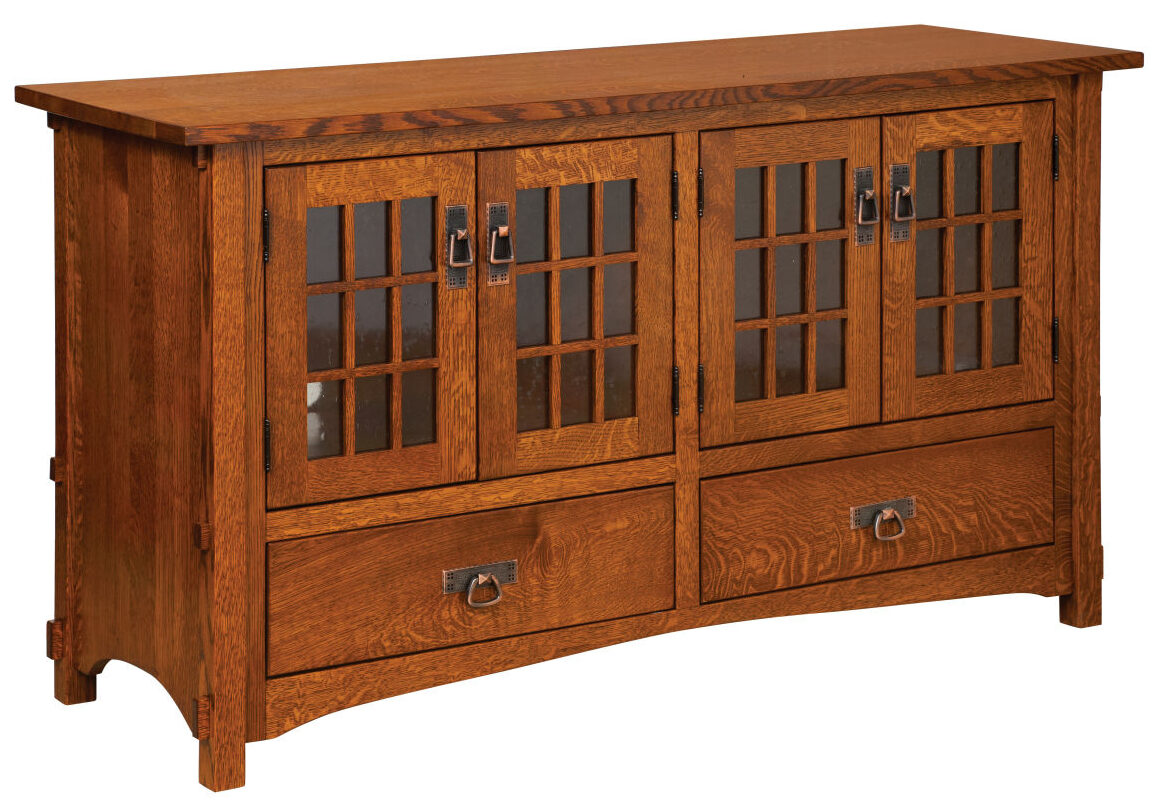 Check out the incredible fit and finish of the Harmony Mission Four Door TV Cabinet. So it shouldn’t surprise you that the best cabinetmakers in the Midwest build it. Yup. Amish artisans skillfully handcraft each TV cabinet. And the craftsmen use quality regional hardwoods. Like maple, oak and hickory. So the TV cabinet is rather sturdy. In fact, with proper care, it should help entertain your family for generations to come.