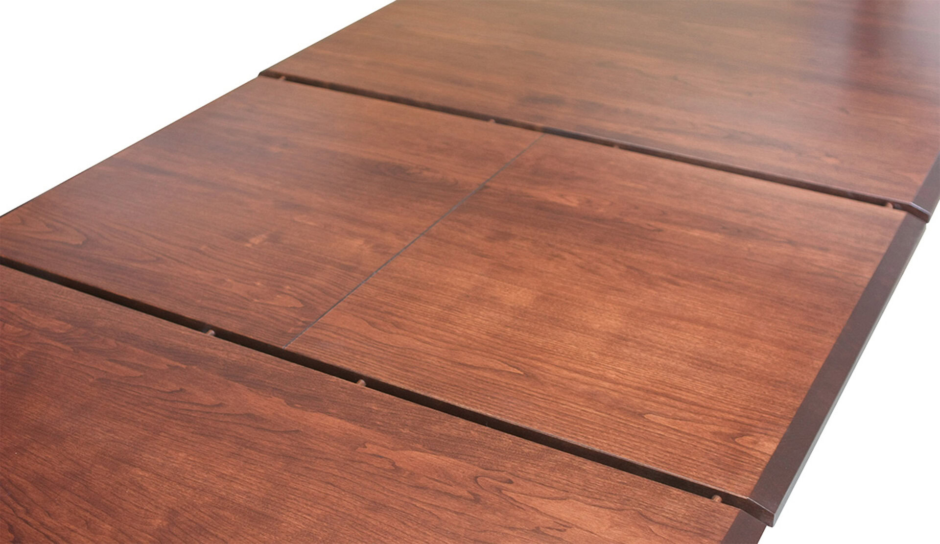 Notice also the exquisite-looking 1-inch solid hardwood top. We’re showing the rectangular top with a beveled edge. As alternatives, you can choose a boat-shaped or an oval top. Also, you can choose a different edge shape.