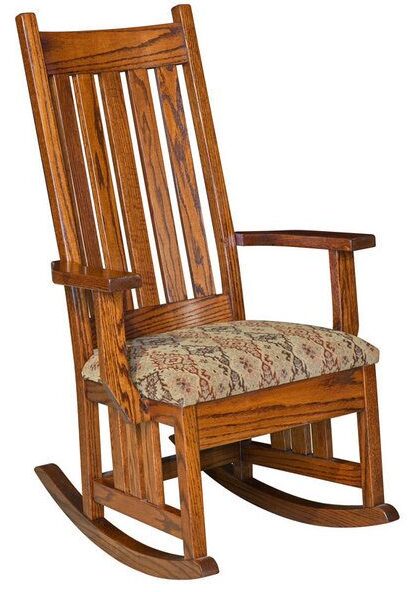 With its burly and stately Mission style plus Amish cabinetmaking, the Harrisburg Mission Rocker is in line to deliver comfort and relaxation in your home for years to come. And it should complement your existing furniture. Indeed, the slats in the backrest and base show off the Mission style. We offer the rocker with a fabric, leather or wood seat (shown). And we have numerous fabrics and leather options to choose from. In fact, you can request a Tie-On Back Cushion. Amish cabinetmakers – the best in the Midwest – build the rocker. Also, they use top hardwoods like oak, maple and cherry. No wonder the piece is so great-looking, sturdy and heirloom-quality! Ready to order? Click the “Customize this product” button below. Then, fill out the customization fields. Or call 877-357-2106.