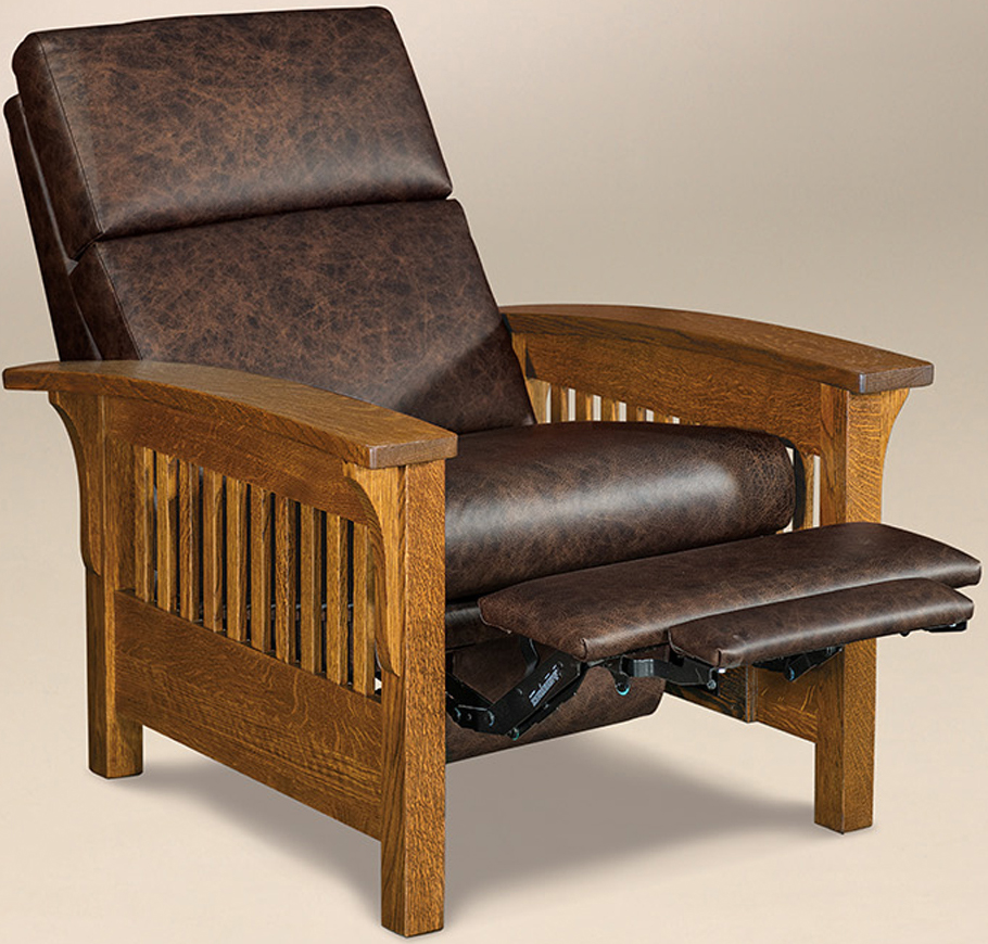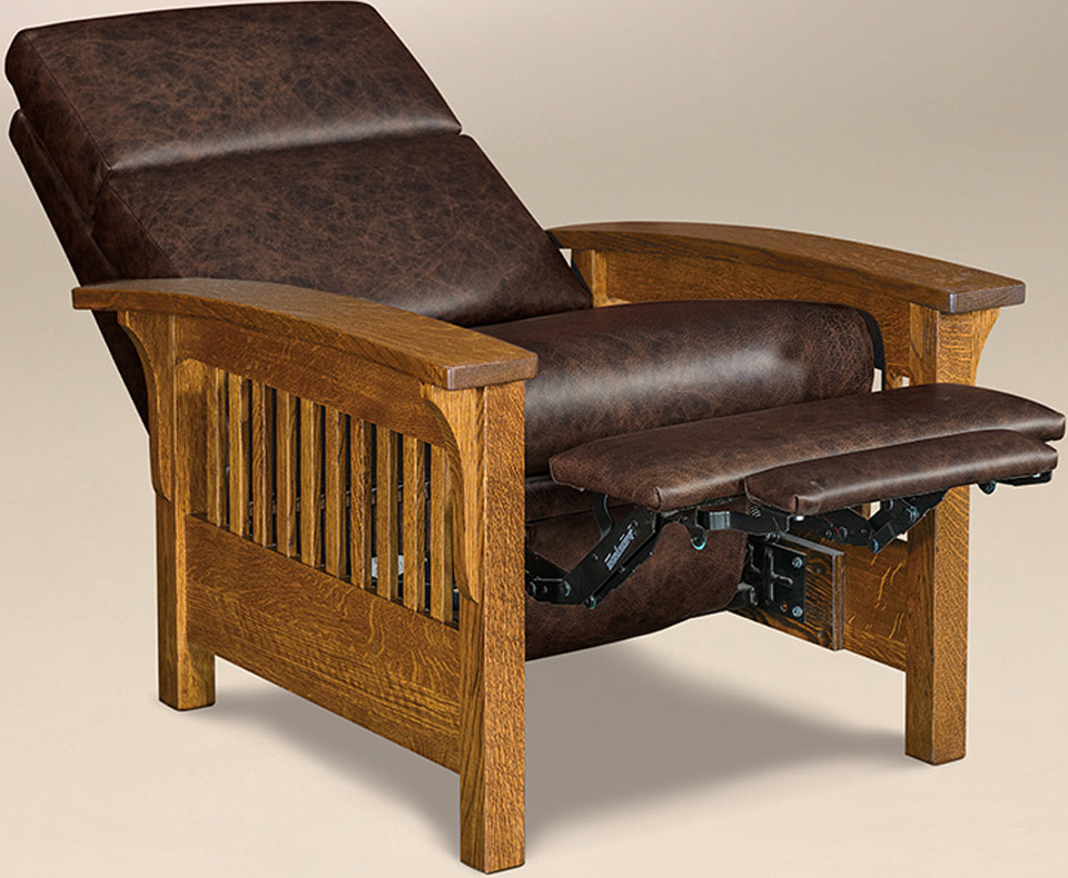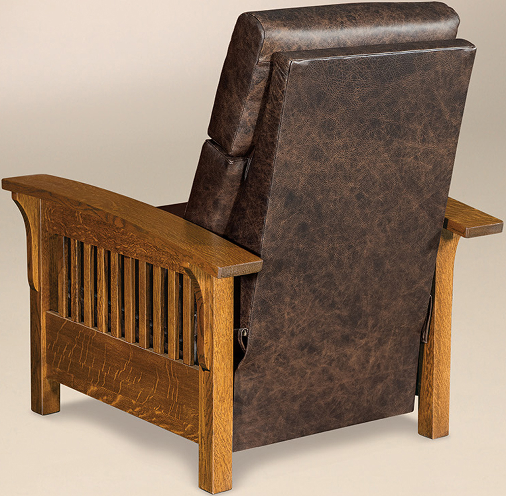 The Mission-style slats, curved arms, and decorative corbels show off the superior Amish cabinetmaking. Our Amish cabinetmakers are the best in the Midwest. Also, they use solid regional hardwoods. Such as oak, cherry, and maple. Also, they integrate time-honored techniques. Such as mortise and tenon joints. No wonder the recliner is sturdy and durable! Above all, it is heirloom quality!