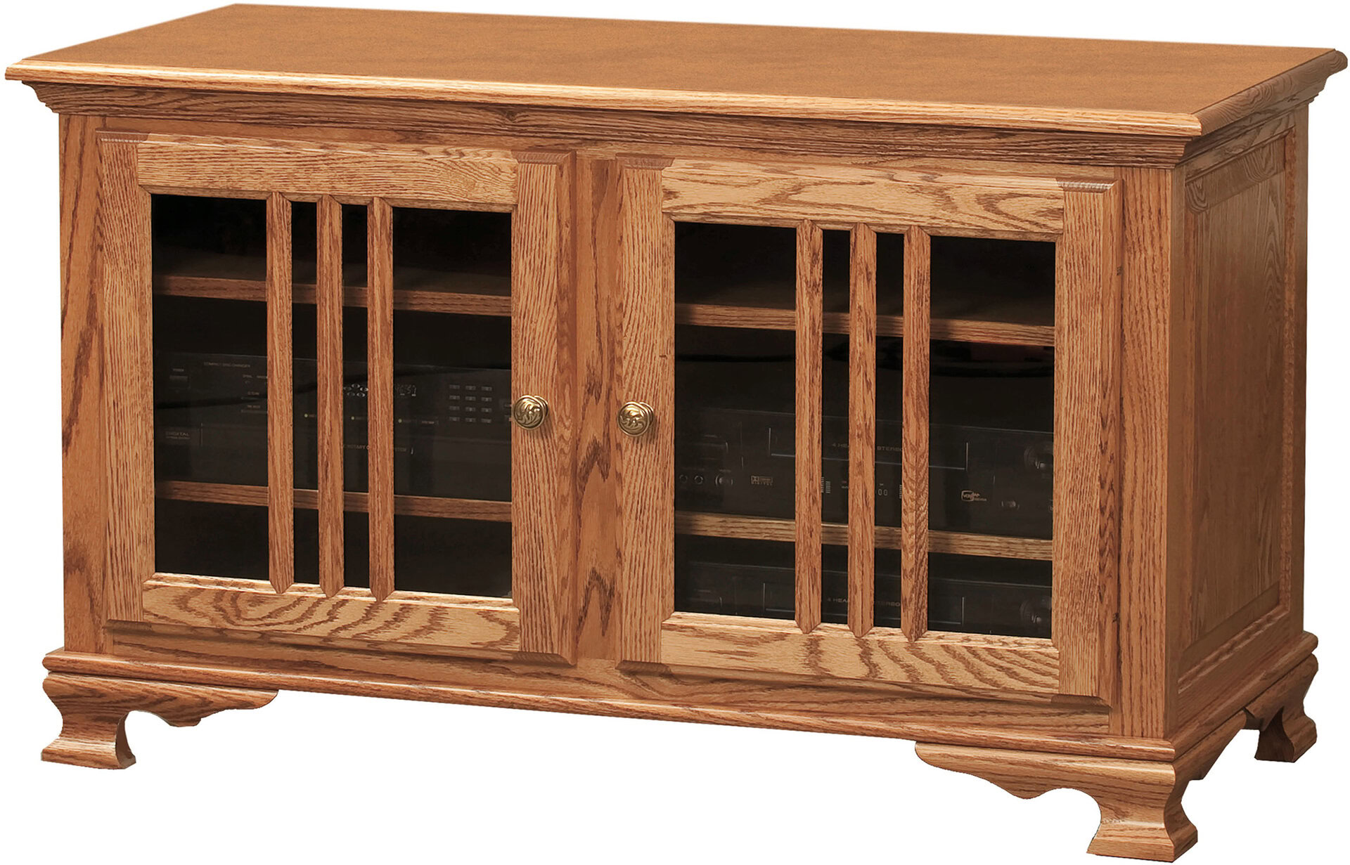 The Heritage Two Glass Door TV Stand is an excellent example of Amish quality and style. It has the carved feet with beautiful mullions on the door which definitely add another level of style to this Amish piece of furniture. Additionally, there are two adjustable shelves behind the glass doors. This makes it the perfect spot for your DVD player, stereo or even video game console. If you live in an apartment or simply have a smaller TV then this is the TV stand for you.
