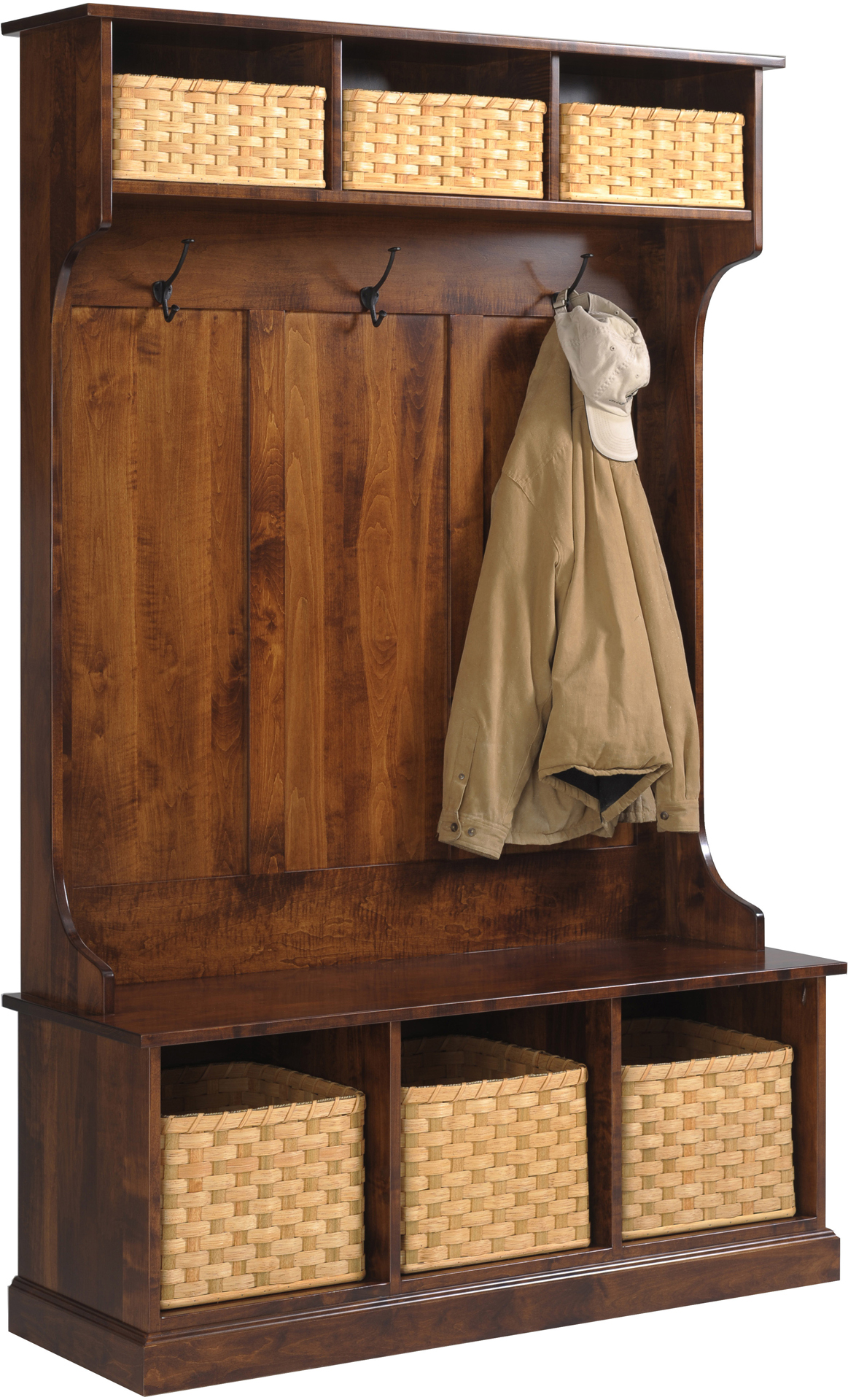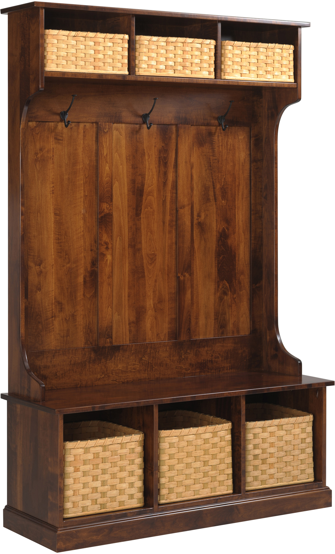 The Holland Style Bench with Hutch and Six Baskets is a perfect mudroom solution for your entry.