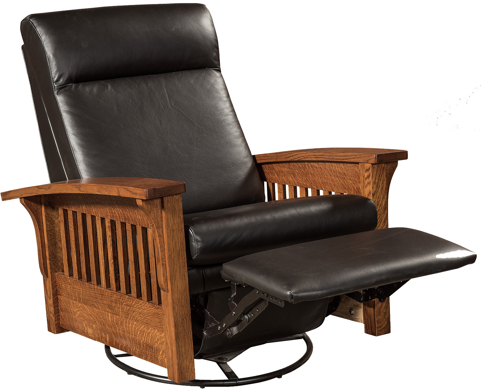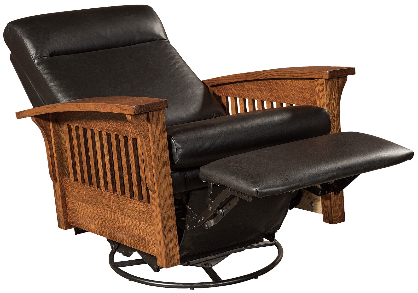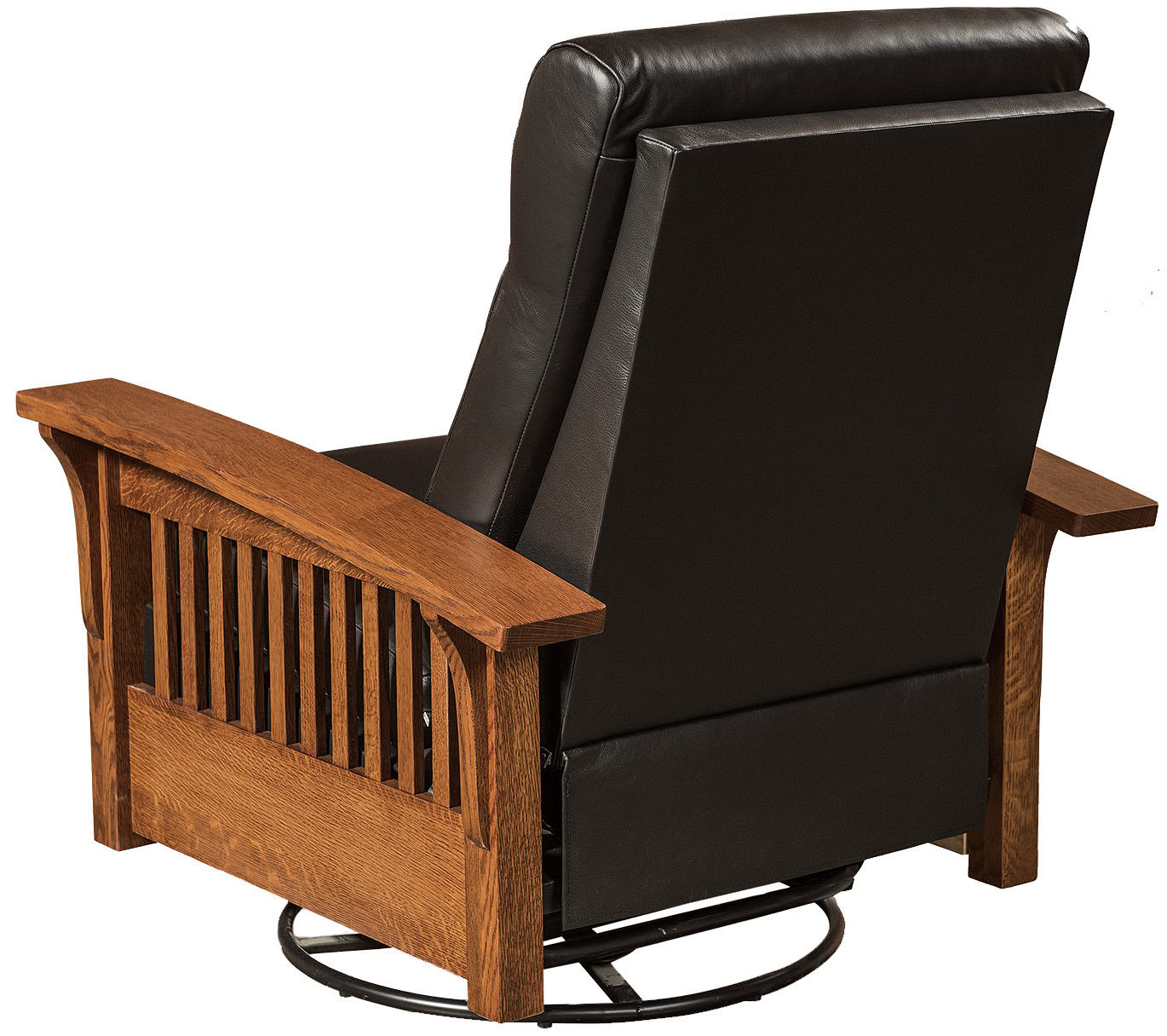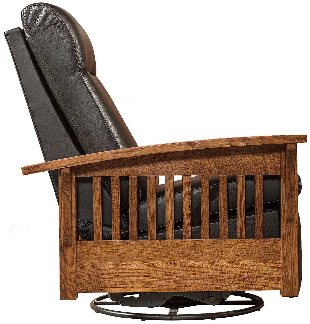The Hoosier Glider Swivel Recliner frees you up to enjoy a whole new level of relaxation. Also, its plush leather upholstery excels in beauty and comfort. While the Mission-style slats and bow arms with corbels showcase Amish cabinetmaking perfection.