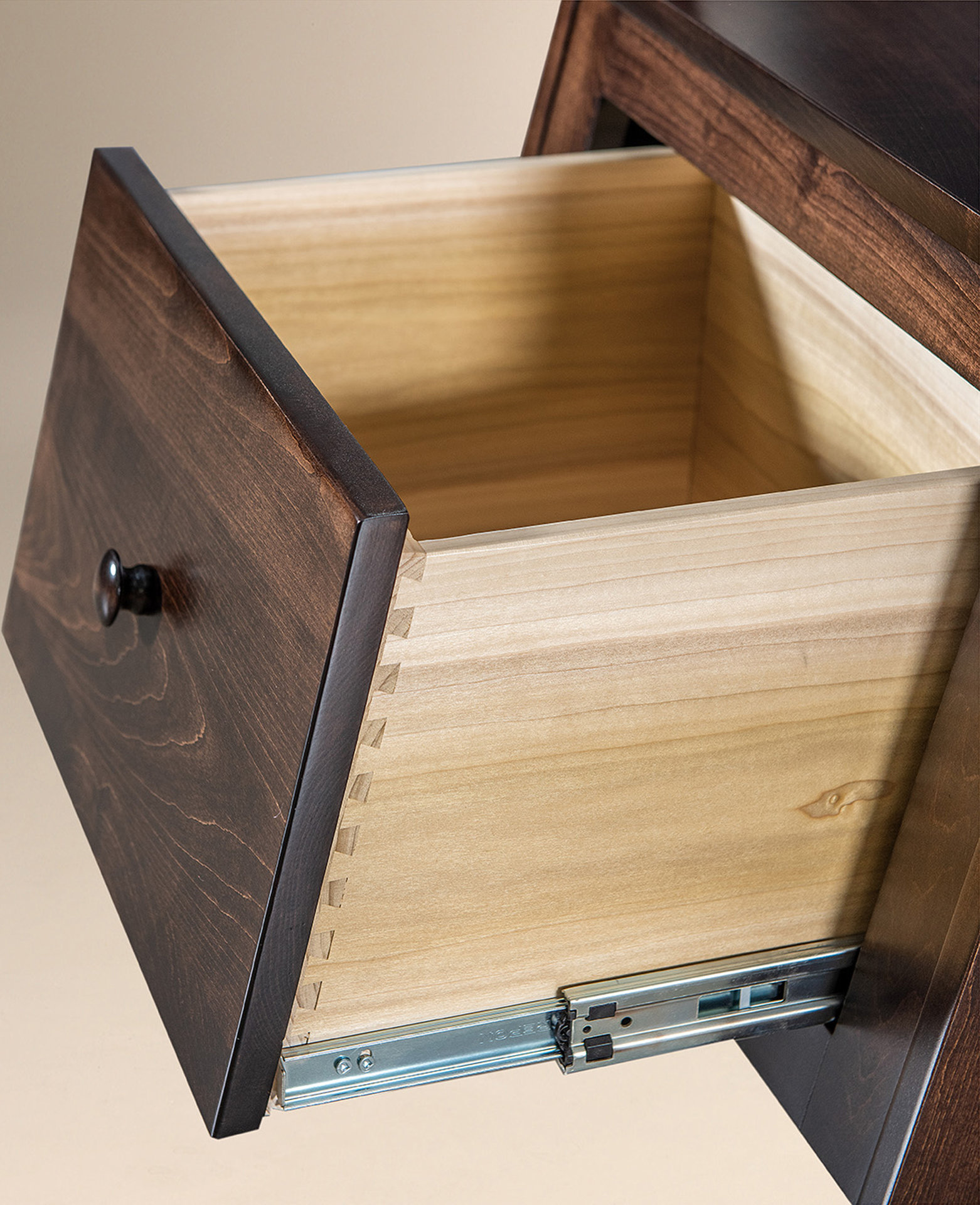 Our Amish cabinetmakers placed back and side stops on each shelf to prevent items from falling. Also, the bottom drawer will certainly come in handy. And its dovetail joints enhance strength and durability.