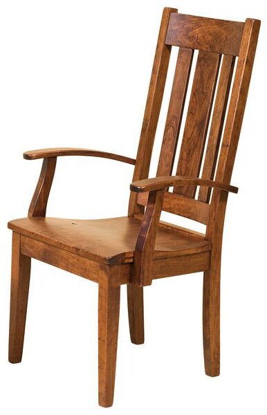 With overtones of the farmhouse look, the Jacoby Dining Chair blends simplicity – as in the wide back slats – with an artistic seat design. Check out the decorative wooden dowels anchoring the mortise and tenon joint in the seat. We offer this piece as a side chair and an armchair. So you can choose any combination that suits your fancy. Some homeowners like placing an armchair at both ends and side chairs in between.