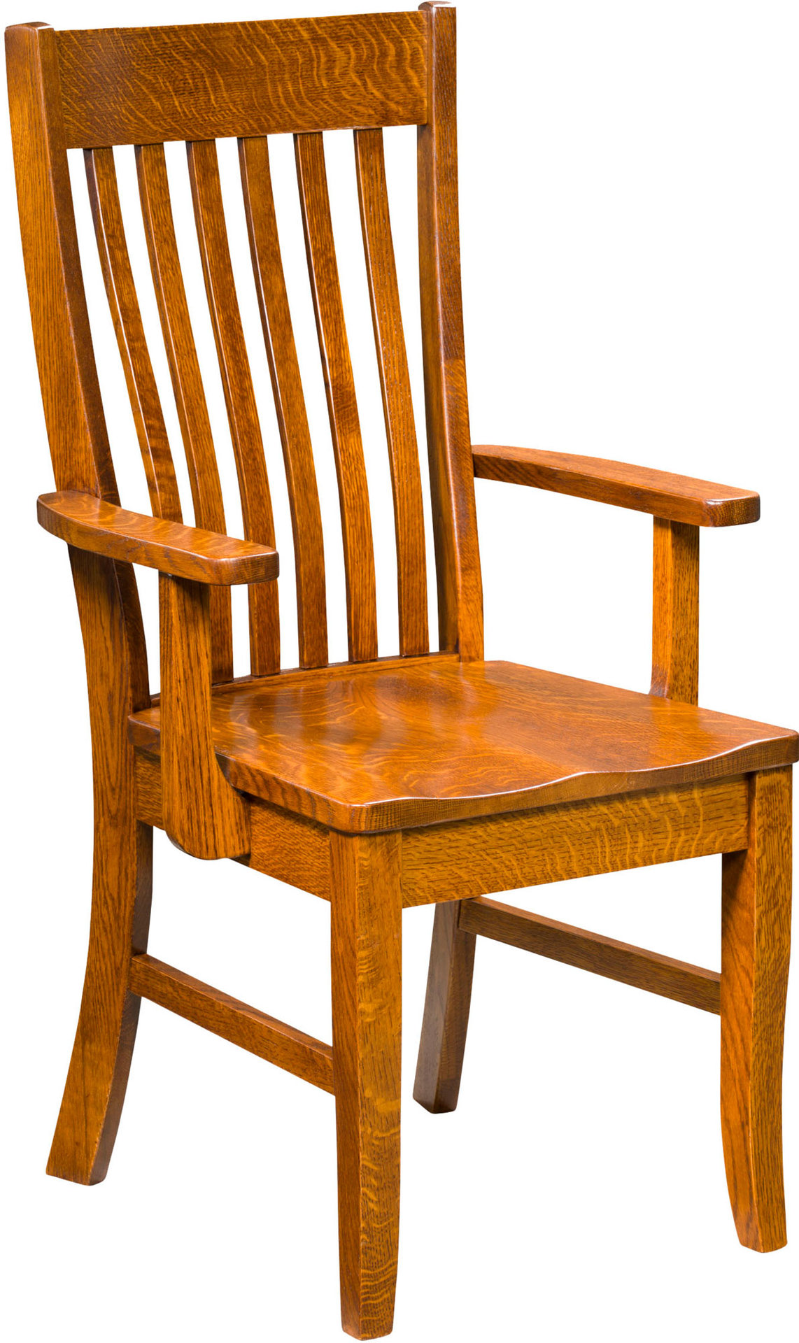 The stately look of the Mission style plus the durability of Amish cabinetry come together in the Jansing Dining Chair. What a beautiful choice for your traditional dining room! The curved backrest and wide slats provide great back support. While the saddle scoop seat enhances comfort. Want even more comfort? Request an upholstered seat, finished in fabric or leather. Also, you can order the chair in any combination of side chairs and armchairs. Amish cabinetmakers — the best in the Midwest — build the chair. And they use top hardwoods like quarter-sawn white oak (shown with Michael’s Cherry Stain). No wonder the chair is so sturdy and heirloom-quality! Ready to order? Click the “Customize this product” button below. Then, fill out the customization fields. Or call 877-357-2106.