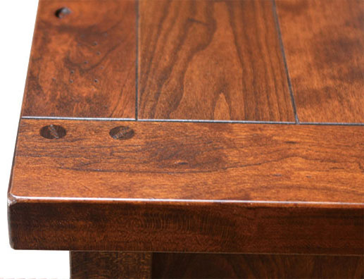 Think of the Jordan Sideboard as a contemporary piece of furniture with an antique flair. Indeed, its clean lines, flush doors and drawers and square hardware give the piece a modern look. While the 1 3/8-inch plank top with dowels and breadboard ends are totally old school. As is the tumbuckle down below. The drawers open full-extension for easy access to all the items inside. And they soft-close with a gentle push. Amish cabinetmakers — the best in the Midwest — build the sideboard using top hardwoods like rustic cherry (shown with Michael’s Cherry Stain). No wonder the sideboard is so sturdy, it’s heirloom-quality! Ready to order? Click the “Customize this product” button below. Then, fill out the open (blank) fields. Or call 877-357-2106 today.