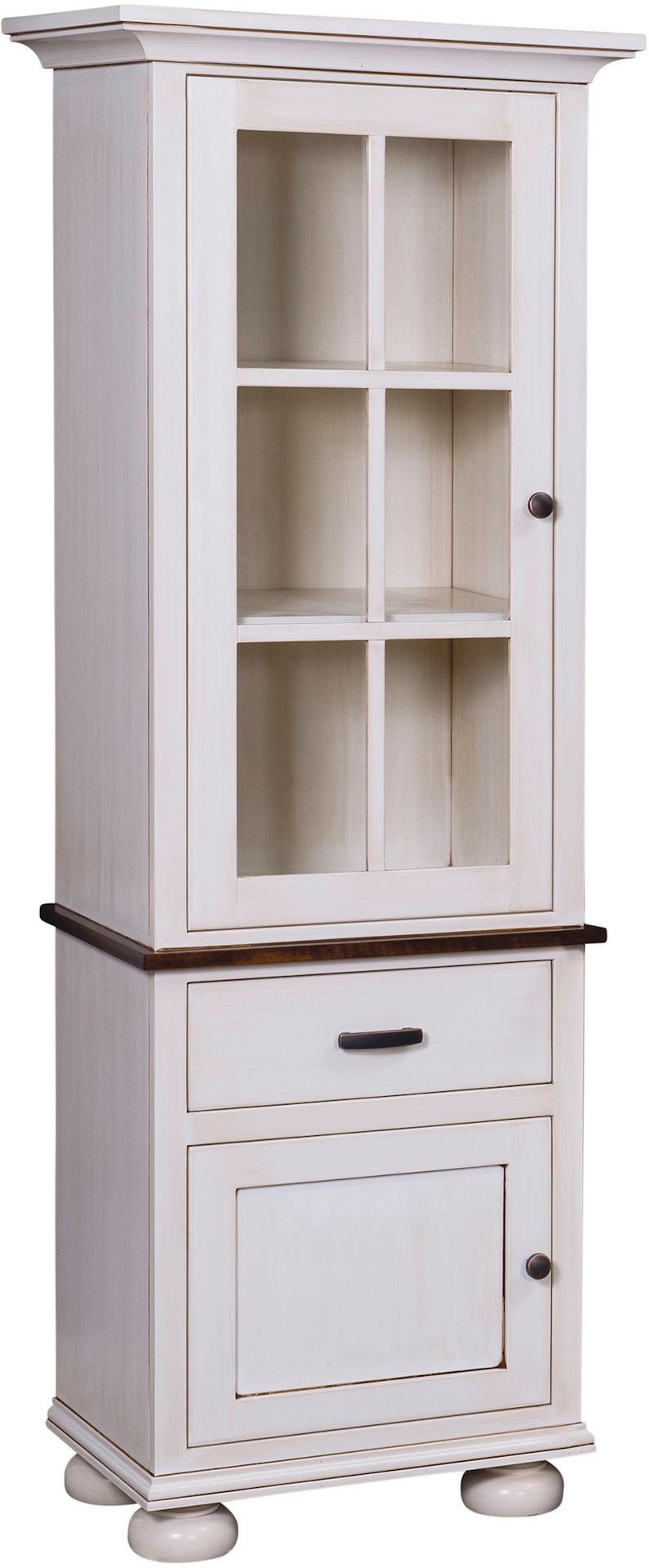 The Kaitlyn Media Tower is an excellent cabinet for many purposes. It can serve as a curio cabinet, a hallway linen closet or you can pair it with a TV stand for a complete entertainment set! The mullioned glass doors and concealed soft-close hinges are just a couple of its fine features. Also, you can choose whether you want the bottom wooden door to open to the left or right. So choose your favorite wood species and finish. Then, before you know it this Kaitlyn Media Tower will be part of your lovely home.