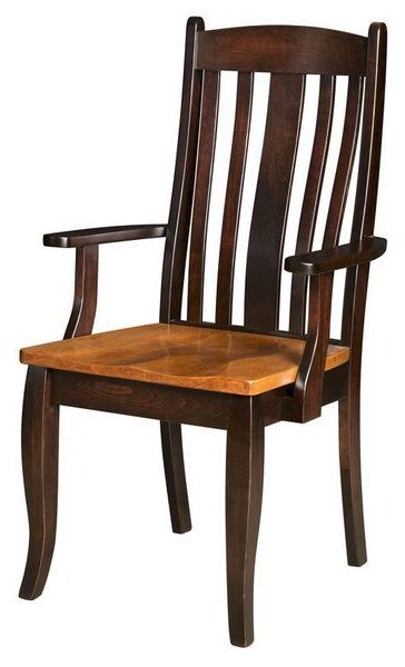 Everything about the Kensington Dining Chair says high-end: From the chair’s elegant, steam-bent slats to its two-tone finish. And from the curved backrest top to the carved feet! The curved slats provide great back support. While the saddle scoop seat enhances comfort. Want even more comfort? Request an upholstered seat, finished in fabric or leather. Also, you can order the chair in any combination of side chairs and armchairs. Amish cabinetmakers — the best in the Midwest — build the chair. And they use top hardwoods like oak, maple and cherry. No wonder the chair is so sturdy and heirloom-quality! Ready to order? Click the “Customize this product” button below. Then, fill out the customization fields. Or call 877-357-2106.