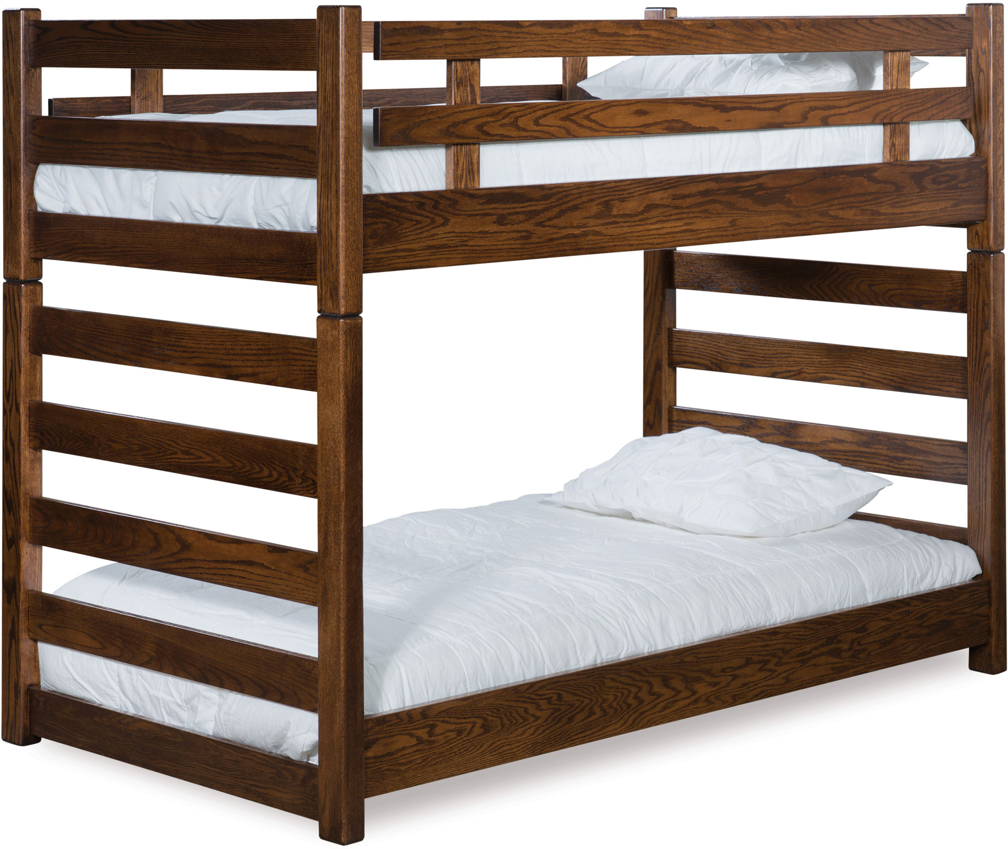 The Ladder Hardwood Bunk Bed is the perfect choice for a kids’ room. Horizontal slats at each end of the bed catch the eye – and serve as a ladder to the top bunk. How cool is that! Side railings on the top bunk provide added safety. What’s more, you can detach the top bunk and create two single beds. Amish cabinetmakers — the best in the Midwest — build the bed. And they use top hardwoods like maple, cherry and oak. No wonder the bed is so sturdy and heirloom-quality! Ready to order? Click the “Customize this product” button below. Then, fill out the customizing fields. Or call 877-357-2106.