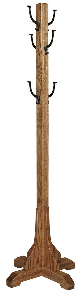 Our Amish builders designed the Large Mission Hall Tree with a wide, well-supported base. So it will stay upright, despite bearing large, bulky coats. Also, we use long, sturdy hooks. So they’ll easily support bulky coats and headwear.