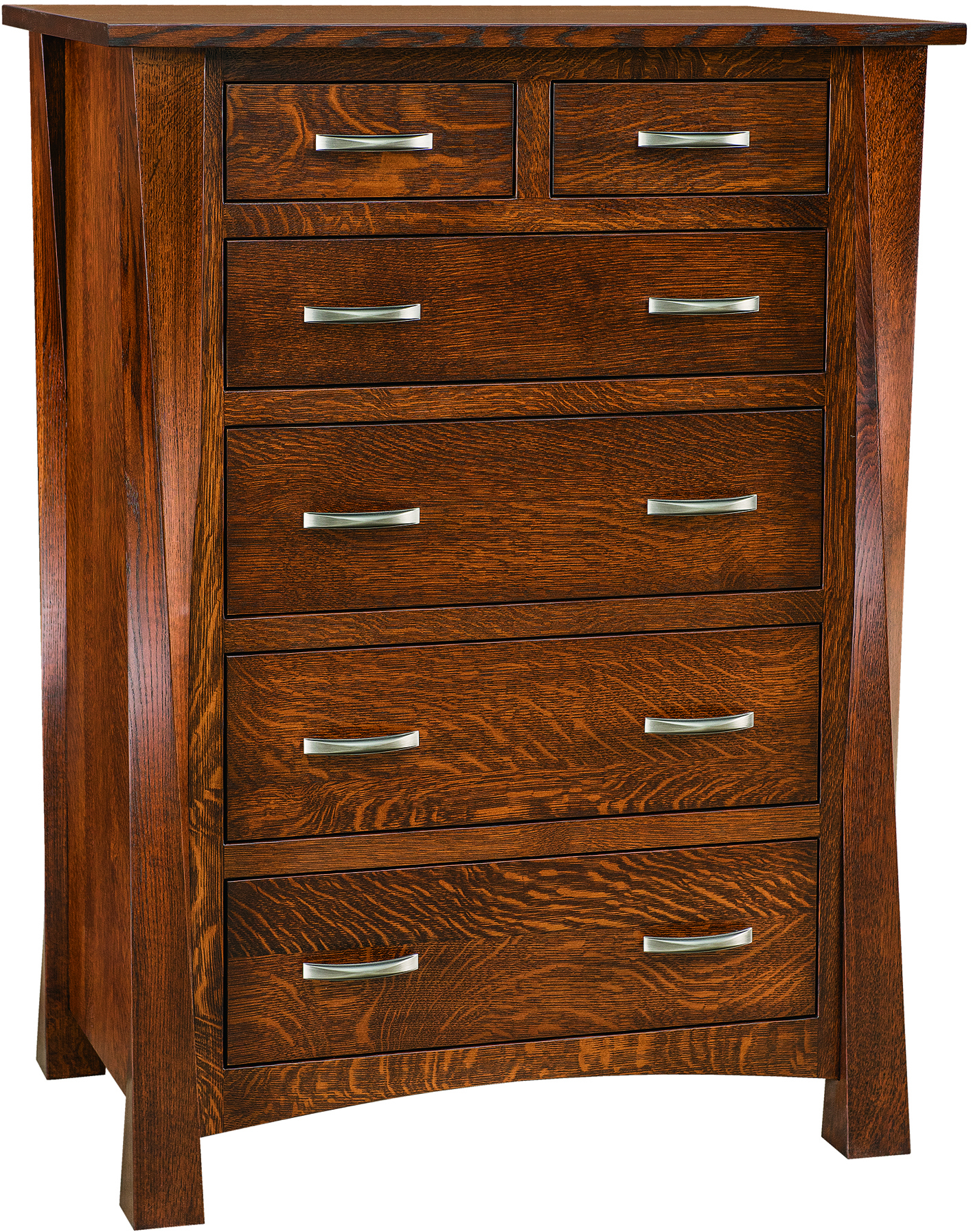 The Lexington 6 Drawer Chest has beautiful curved edges which gives it a modern style. Since there are a variety of drawer sizes, it offers tons of storage. Browse through our complete furniture collection. We are happy to answer any questions and help fit your design and storage requirements.