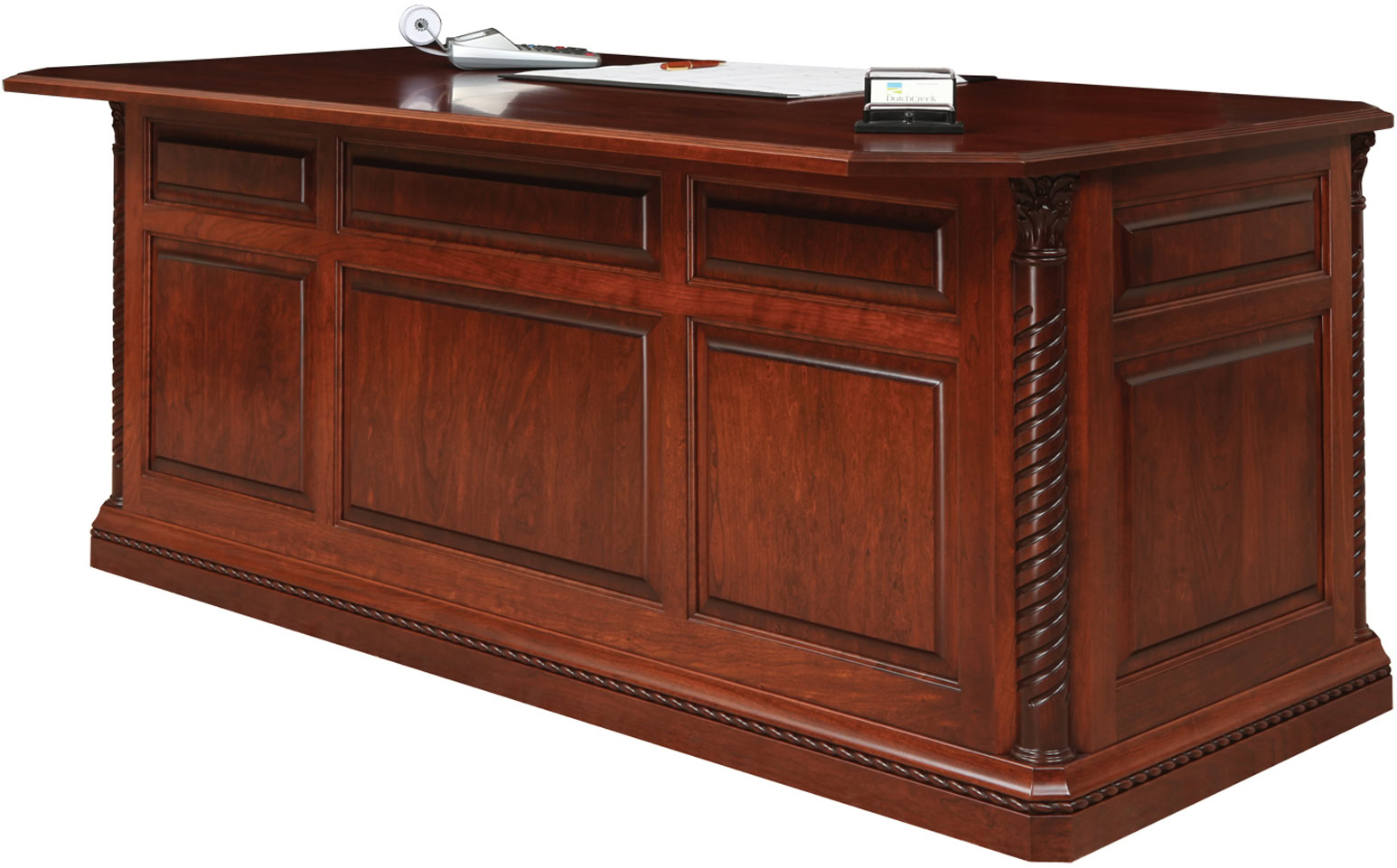 With a braided vertical column at each corner, a braided accent in the base molding, and raised panels on three sides, the Lexington Executive Desk presents the picture of prestige. Imagine how self-assured you’ll feel with this desk commanding your in-home office. And how much attention it will elicit from family members and friends!