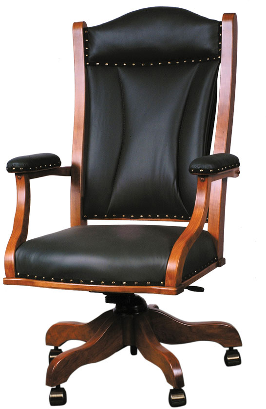 The Liberty Desk Chair combines a classic design with plush leather seating and handy features. Its gas lift delivers the right seat height with the touch of the lever. While the caster wheels make it easy to move the chair around. Amish cabinetmakers build each chair. Also, they use top hardwoods. Like maple, cherry and oak. So you’ll find the Liberty Desk Chair incredibly comfortable. Sturdy. Beautiful. And heirloom-quality. Ready to order? Click the “Customize this product” button below. Then, complete the “Customize Product” fields. Also click the “Get your customized quote” button. Or call 877-357-2106.