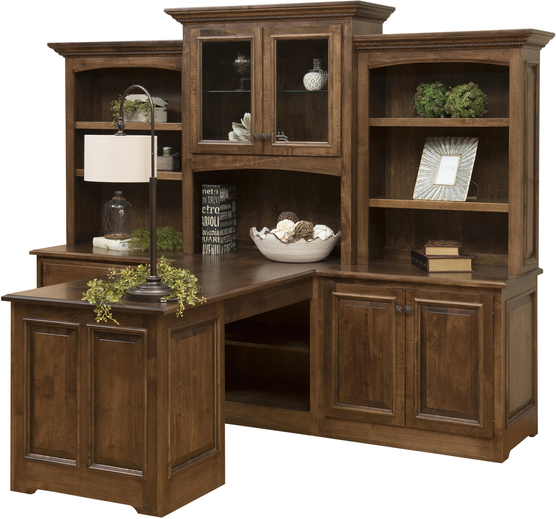 From the ornate crown molding with a decorative rope trim to raised paneling down below, the Liberty Partners Desk and Hutch showcases Amish cabinetmaking at its best. So you could never ask for a better built, better appointed piece for your home office. In fact, the drawers open full extension. So you’ll enjoy easy access to the entire drawer. Also, dovetail drawer joints enhance durability. Amish cabinetmakers build each unit. Also, they use top hardwoods. Like oak, cherry and maple. No wonder the Liberty Partners Desk and Hutch is so incredibly sturdy. Beautiful. And heirloom-quality. Ready to order? Click the “Customize this product” button below. Then, complete the “Customize Product” fields. Also click the “Get your customized quote” button. Or call 877-357-2106.