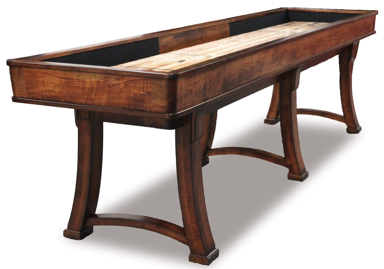 Presenting a table shuffleboard that’s built for years of heavy usage — and has great eye appeal. Lift your cue to the Linwood Shuffle Board. The curved design of the base catches the eye. And the unit excels in strength. Amish cabinetmakers — the best in the Midwest — build the shuffleboard from top hardwoods such as oak, cherry and brown maple (shown with Asbury stain). Notice the hefty legs and the thick frame. Also, we build the playing surface from thick hardwood and finish it with a polymer coat. What’s more, we offer the shuffleboard in lengths of 9, 10, 14, 16, 18, 20 and 12 feet (shown). So, you can choose the length that meets your needs and desires. Ready to order? Click the “Customize this product” button below. Then, fill out the customization fields. Or call 877-357-2106.