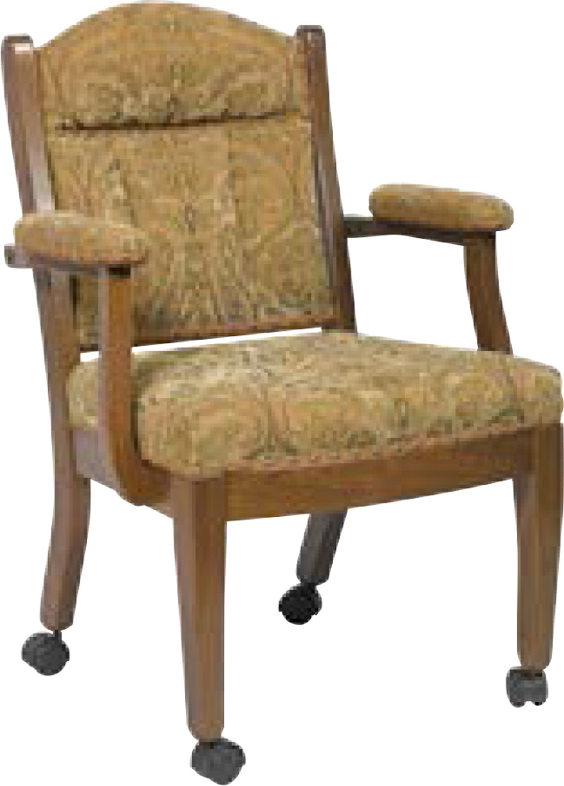 The Low Back Client Arm Chair has a padded seat and back. The stationary chair has a padded back that is plush with comfort. The padded arms are designed for optimal support. The back height has a nice, low profile. Also, nail head trim accents the seat, back, and arms. Pad the chair out of fabric or leather to fit any decor. Customize the solid wood frame with a variety of wood and stain choices.