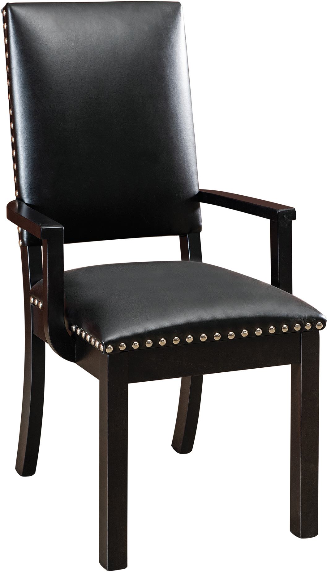 The best word to describe this chair is elegant. The Lynbrook Chair will bring the upscale vibe you are looking for in your dining room. Notice the nickel nailheads along the bottom of the seat and sides of the back. As you can see, the Lynbrook Chair has incorporated comfort for your dining experience by designing a padded seat and back. This upholstered chair offers plenty of options. You will not have a problem finding exactly what you are looking for in a dining chair. Choose from a variety of leathers/fabrics or wood species/finishes to match what is already in your home. This chair is also offered as an arm chair, swivel bar stool, stationary bar stool, or desk chair.