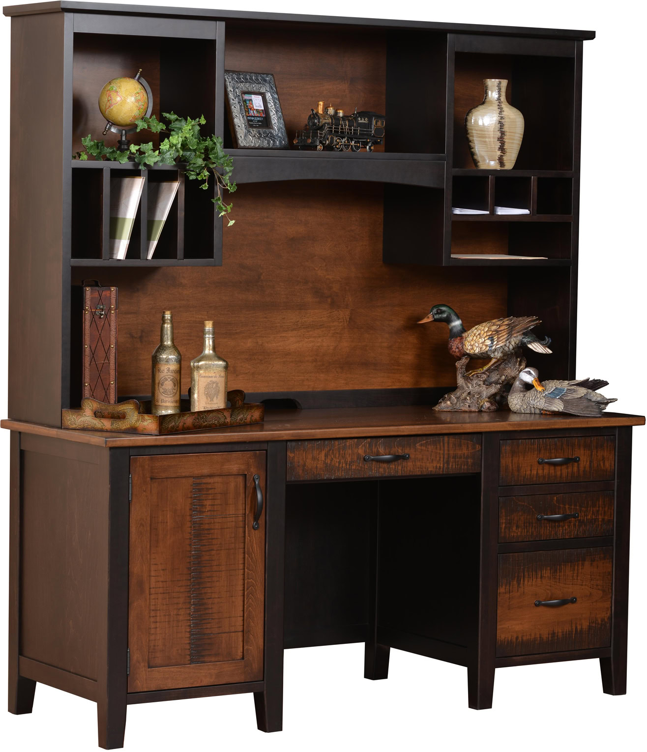 The best cabinetmakers in the Midwest are Amish men. And some of these craftsmen painstakingly handcraft each credenza and hutch. Also, our artisans use solid regional hardwoods. Like cherry, maple, oak walnut, and hickory.