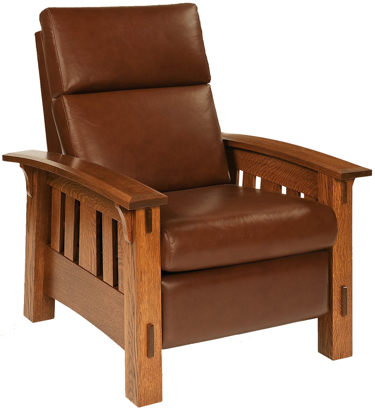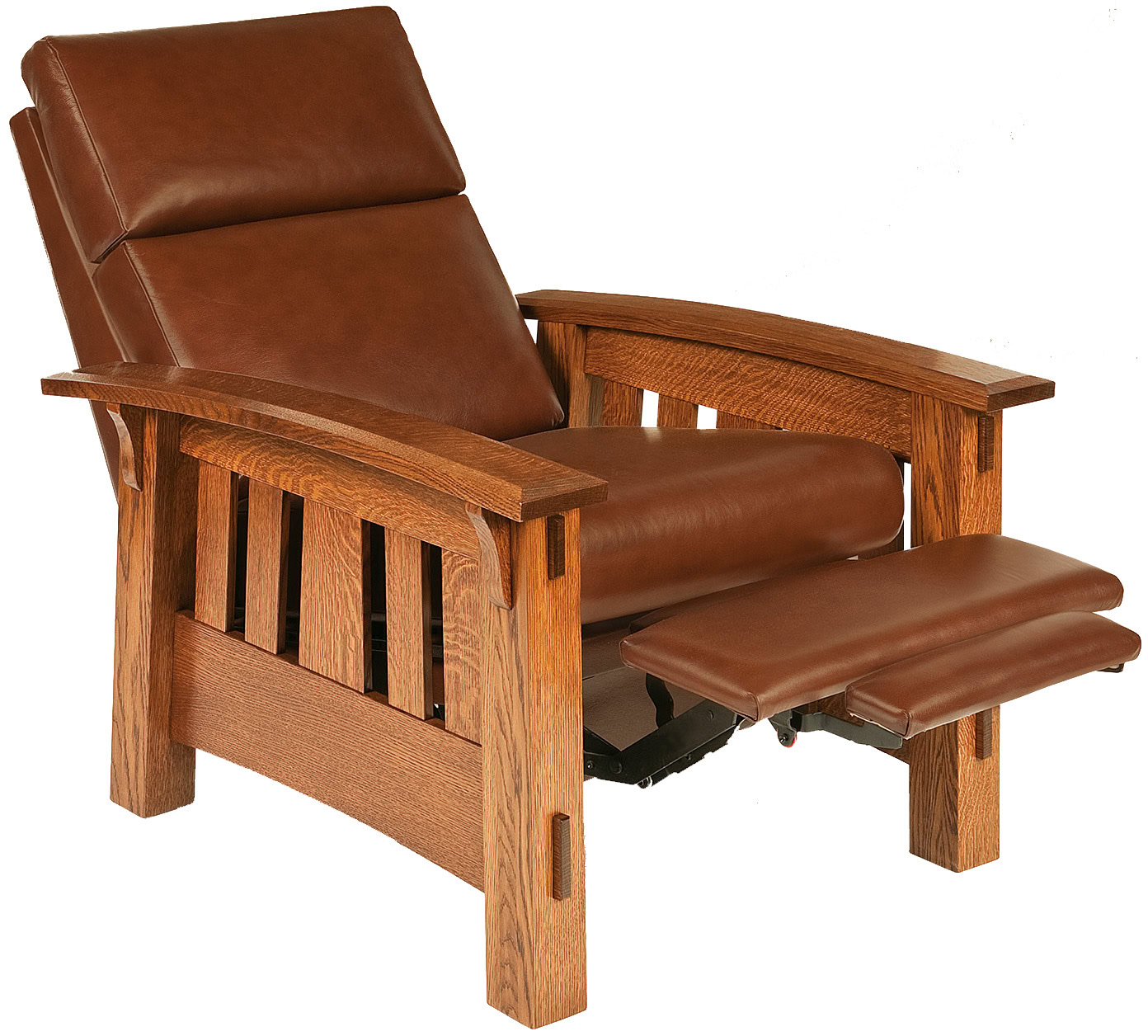 This Hardwood Recliner is as beautiful as it is comfortable. The eye-catching slats and corbels show off its superior construction. So do the exposed mortise and tenon accents and the bow arms. Who is behind this impressive cabinetwork? Amish craftsmen. The best cabinetmakers in the Midwest. Our Amish craftsmen use quality regional hardwoods. Such as oak, cherry, maple, hickory, elm, and walnut. So the recliner is sturdy, durable – and heirloom-quality!