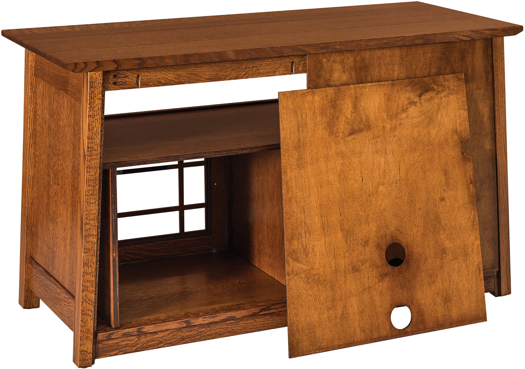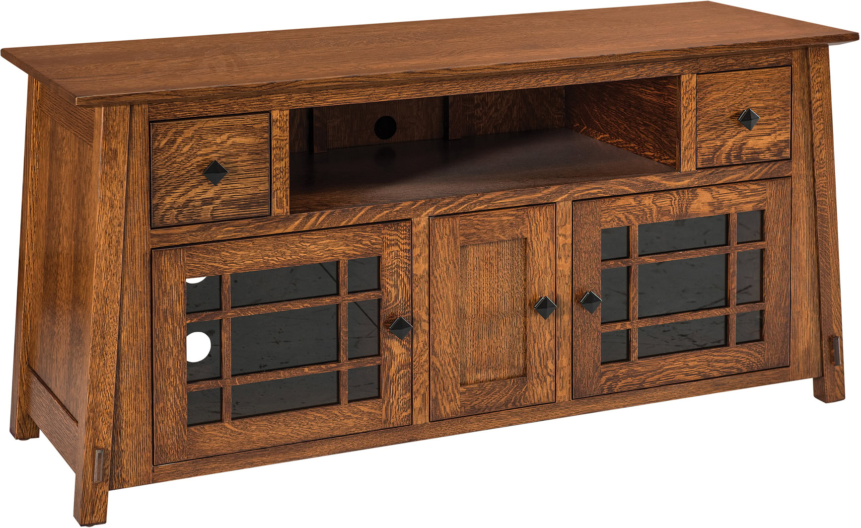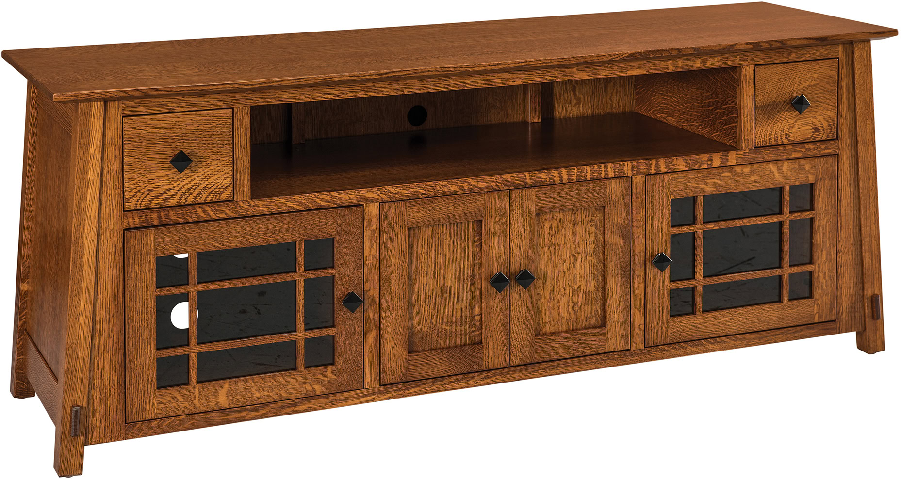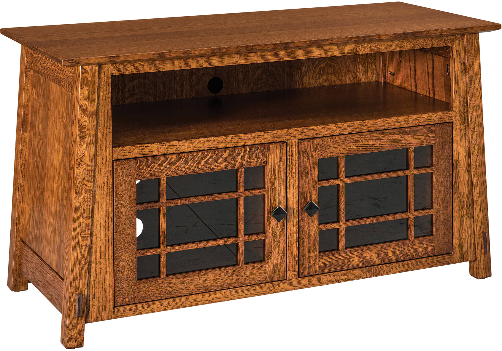 The McCoy Sound Bar TV Cabinets have a classic Mission styling and ample storage space that sets them apart from others. Not only are these cabinets practical, they also boast incredible style. With exposed tenon and wood mullions, the cabinets exude classic McCoy design elements. The open area at the top of each cabinet is a perfect spot for your sound bar or other devices. However, you may also store your devices behind the glass doors. The lightly smoked glass doors ensure that you can still use your remote controls without interruption.