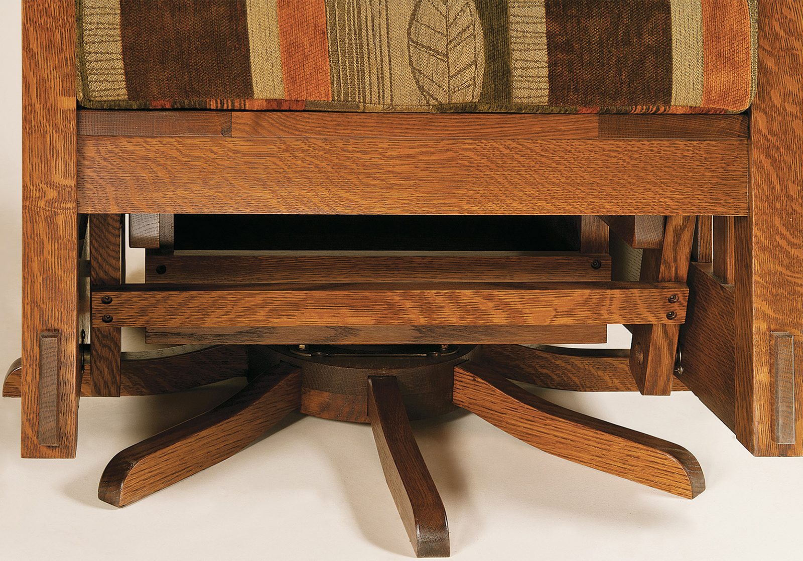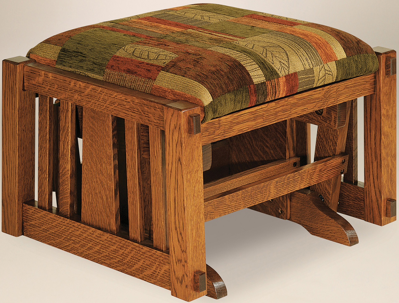 Settle into the plush seat. And savor its comfort. Because our Amish upholsterers build the cushions around Qualux Ultra 2.5 lb. density polyurethane seating foam. It is the best in the industry. Then, prop your feet on the ottoman. And enjoy the smooth back-and-forth glide. Plus cushions pampering you from your head to your feet!