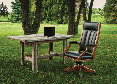 In its truest sense, the Mission Amish Desk Chair is an executive desk chair. Take a glance at its stately profile and features. The chair is fully upholstered and features a headrest and padded arms. Plus an eye-catching nail-head trim. Settle in, and relish the exceptional comfort. A handy gas lift adjusts the chair’s height with a slight push or pull of a lever. Also, you can easily configure the chair’s tilt to any tension. Amish cabinetmakers – the best in the Midwest — build the chair. And they use top hardwoods like oak, maple and cherry. They also use quality foam, fabrics and leather. (We have a plethora of fabrics and leather to choose from.) No wonder the chair is so sturdy and heirloom-quality! Ready to order? Click the “Customize this product” button below. Then, fill out the customizing fields. Or call 877-357-2106.