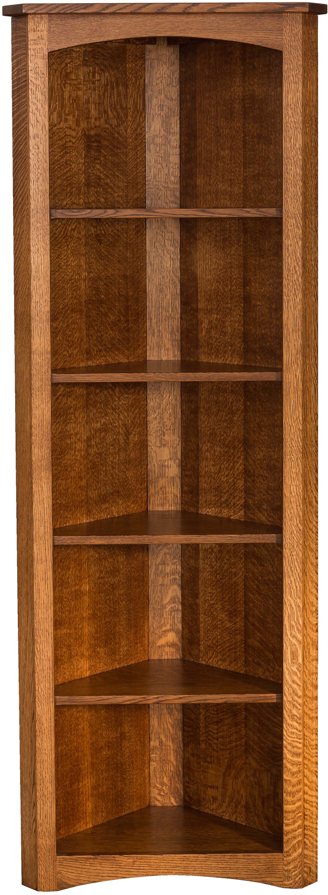 The Mission Corner Bookcase adds beauty and function to an underused corner of your dining room, living room or office. Because the bookcase is the ideal spot for showing off items like picture books, photos and figurines. Wish to keep some items more private? Ask for the piece with bottom doors. Amish cabinetmakers — the best in the Midwest —- build the bookcase. And they use top hardwoods like gray elm (shown with FC-10901 Stain) and quarter-sawn white oak (shown with Michael’s Cherry Stain). No wonder the unit is so sturdy and heirloom-quality! In fact, it’s far superior to bargain bookcases built with fake wood. Ready to order? Click the “Customize this product” button below. Then, fill out the customizing fields. Or call 877-357-2106