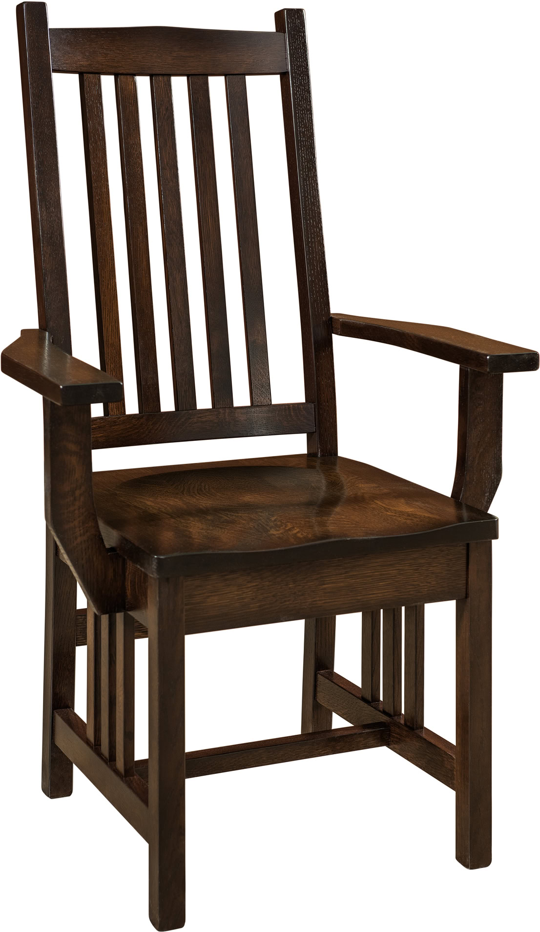 Straight lines, a hefty look, dark finish and slats give the Mission Kitchen Chair its distinctive look. What a great-looking chair to complement your dining table! We offer the chair as a side chair or armchair. So you can surround your dining table with either or both chair styles. A wooden seat is standard. Want even more comfort? Request an upholstered seat, finished in fabric or leather. Amish cabinetmakers — the best in the Midwest — build the chair. And, they use top hardwoods like oak, cherry and maple. No wonder the chair is so sturdy, it’s heirloom-quality! Ready to order? Click the “Customize this product” button below. Then, fill out the customization fields. Or call 877-357-2106.