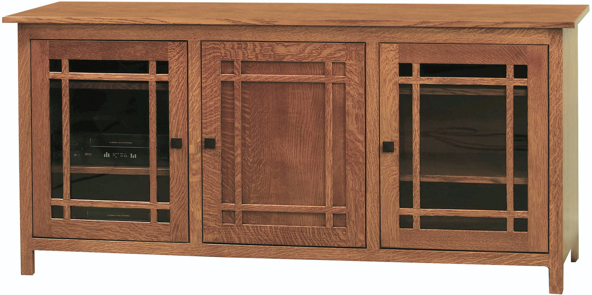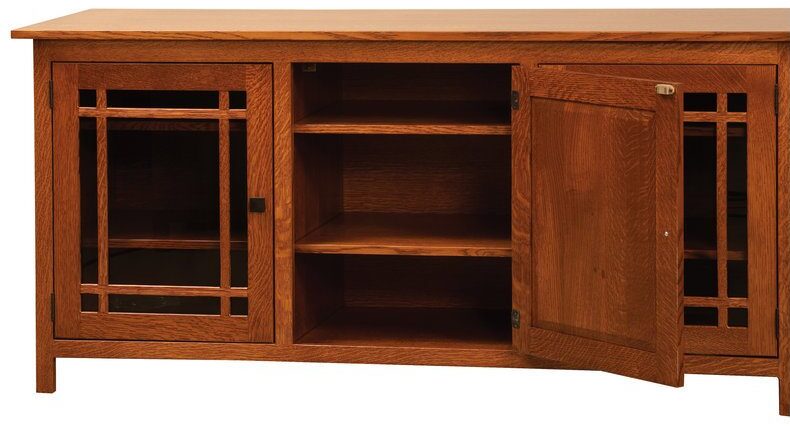This Mission Large Three Door TV Stand has a beautiful and unique style. It’s two glass doors with mullions and one solid wood door with mullions really add that little bit of extra to this piece. You will love the soft-close doors, six adjustable shelves and black hardware. Additionally, you may even want to add optional corbels for even more style. Without a doubt you will love the quality craftsmanship that goes into making this TV stand, too. Our Amish artisans only use the finest hardwoods and pay close attention to all of the little details. This ensures you will get a product you want that will last for years to come.