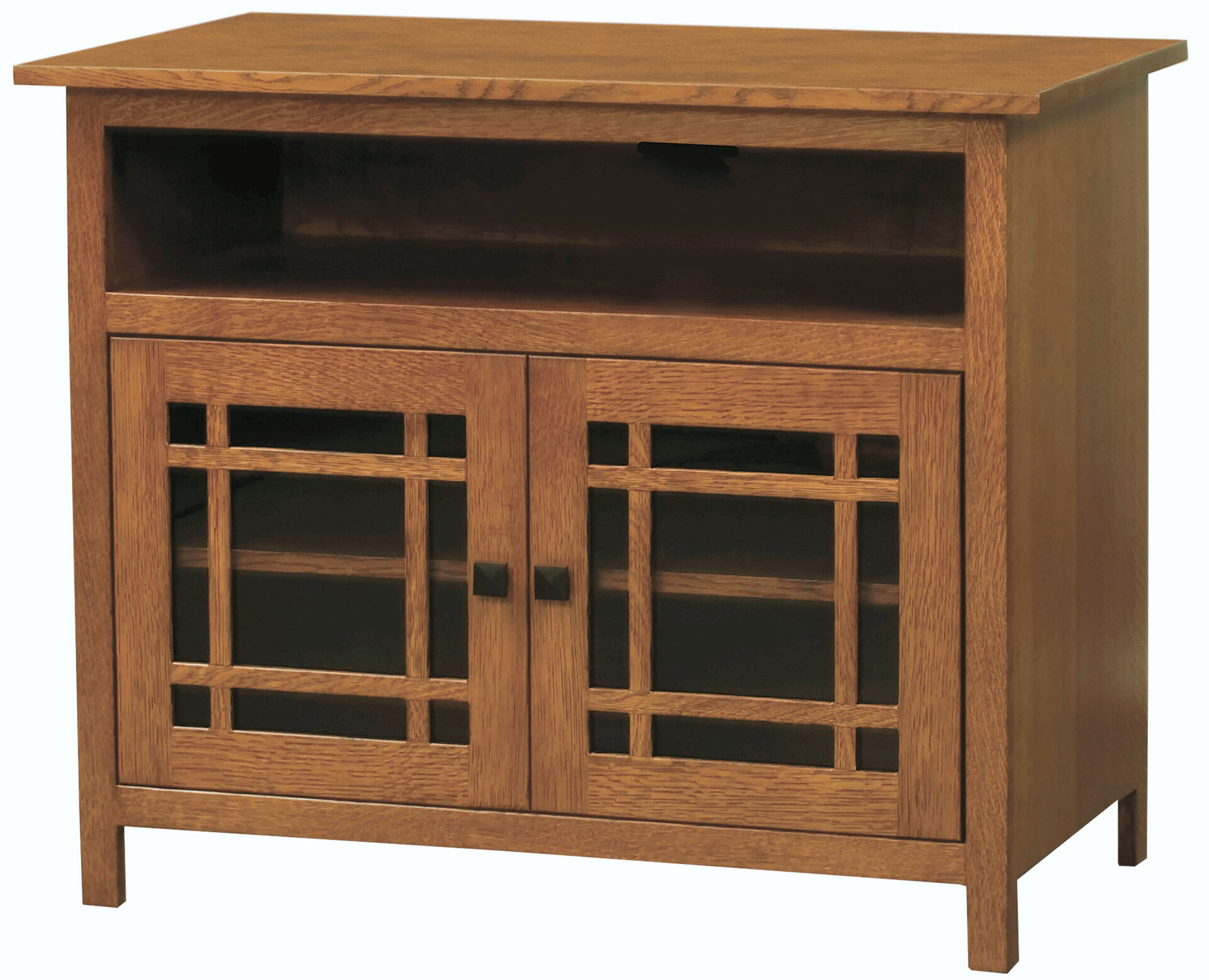The Mission Small Two Door TV Stand is simple yet stylish. The mullions add to its mission style and you can add optional corbels for even more pizazz. Its two glass doors and large open area allow plenty of room for all of your electronic needs. No need to settle on mediocrity with this piece. You will love all of the solid hardwoods you get to choose from as well as the soft-close doors. You can rest knowing our Amish craftsmen take great pride in their work and make sure all of your needs are met. So, don’t hesitate to ask about customizing this TV stand to meet all of your needs.