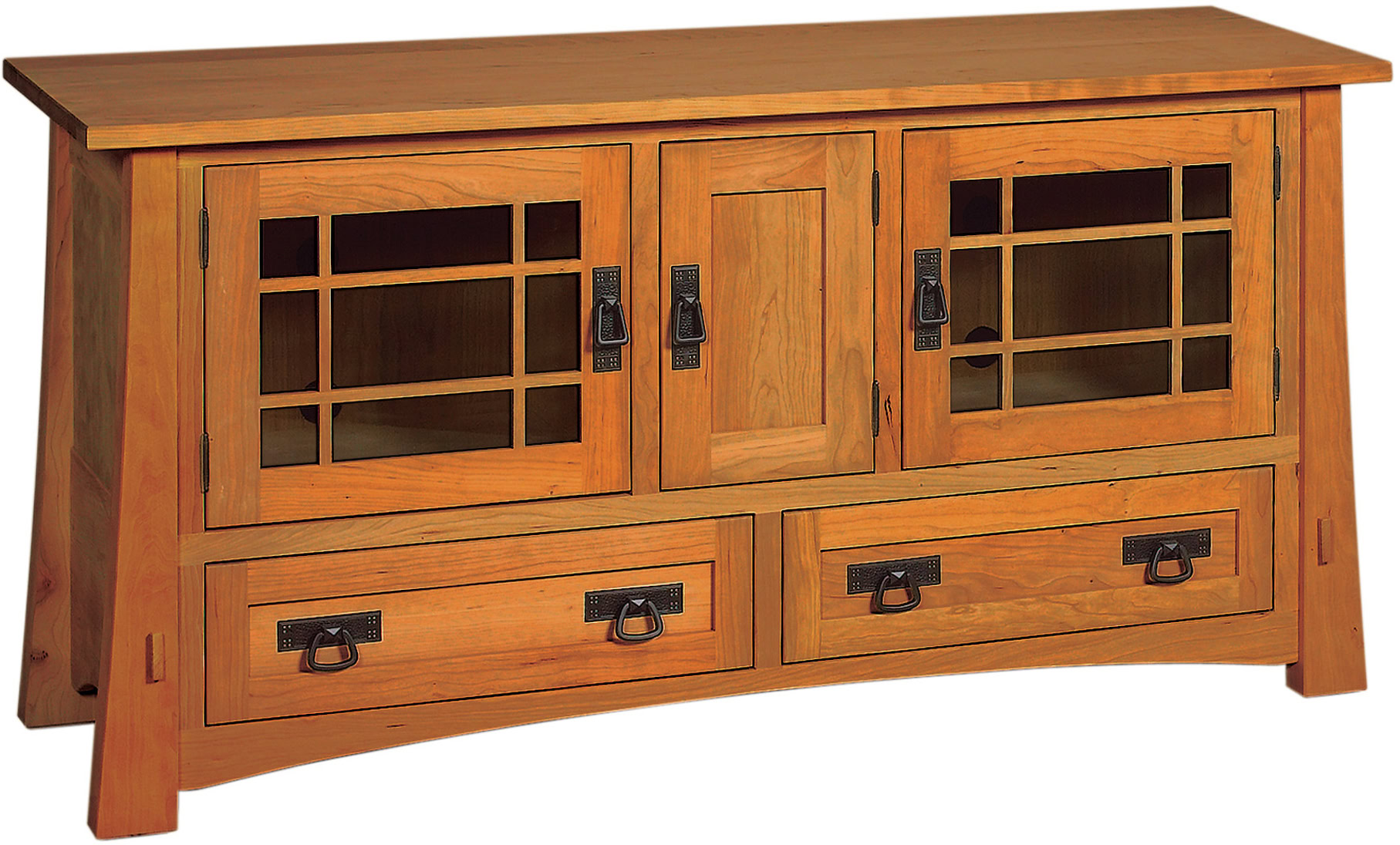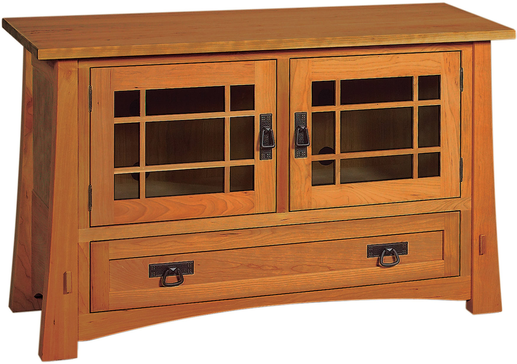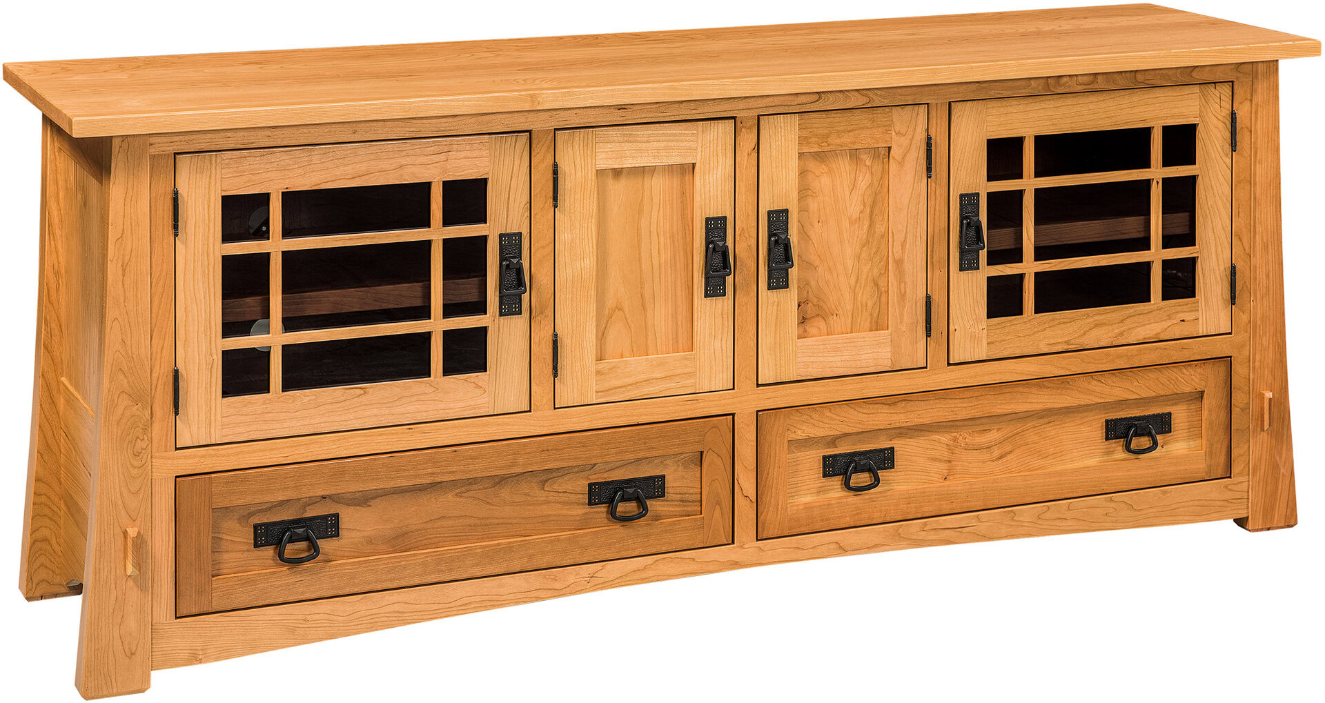 The Modesto TV Cabinet with Drawers has elegant styling and includes a rich finish and angled legs. Exposed tenons and wood mullions accent these exquisite pieces. Lightly smoked glass in the doors help conceal your items, but also allow for your remote control to work. So, you can still communicate with your devices while your items remain neatly tucked away. Adjustable shelving and drawers also provide ample storage space. So, these cabinets truly are as practical as they are beautiful.
