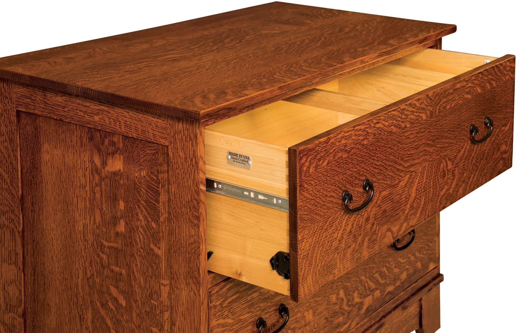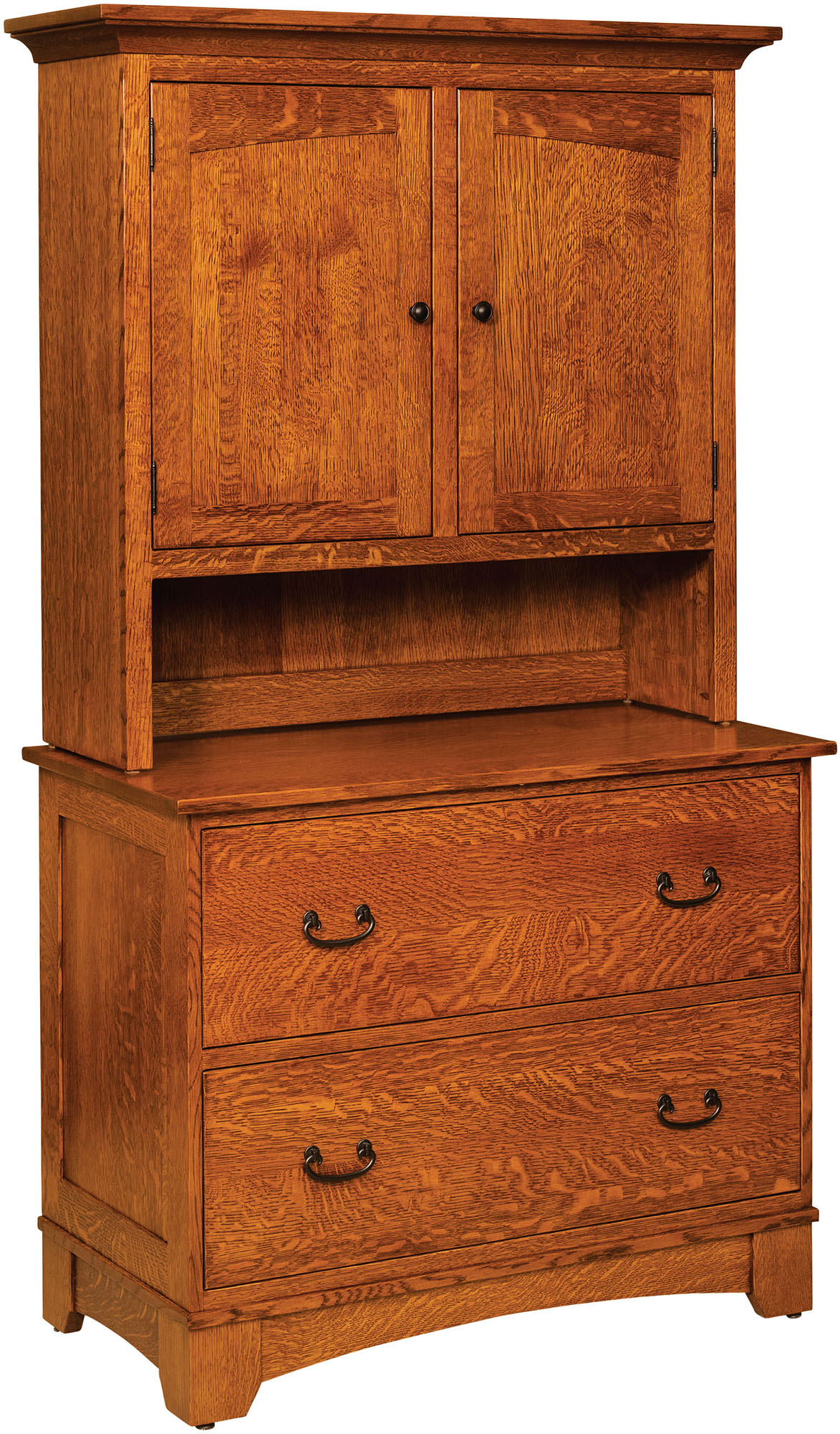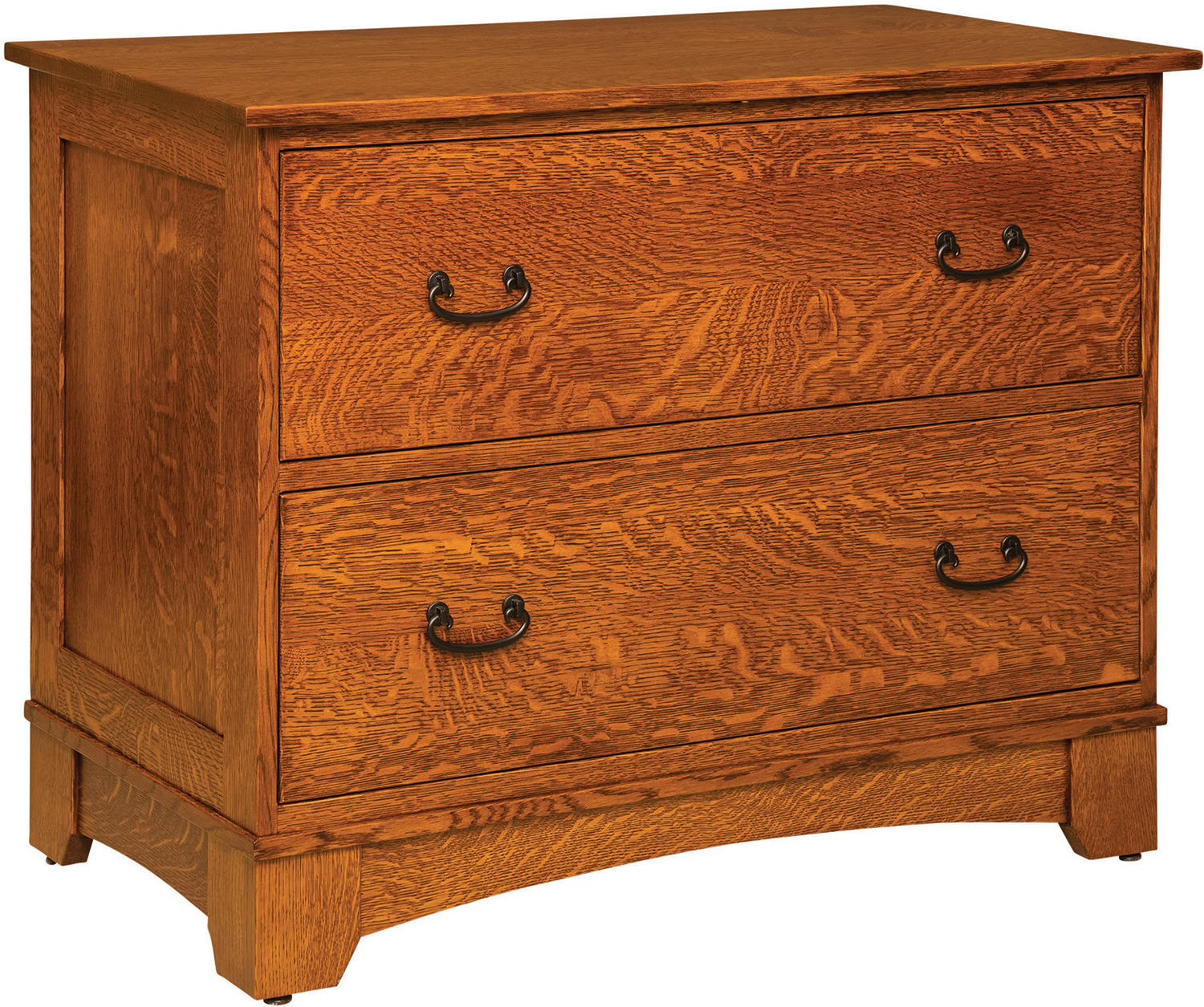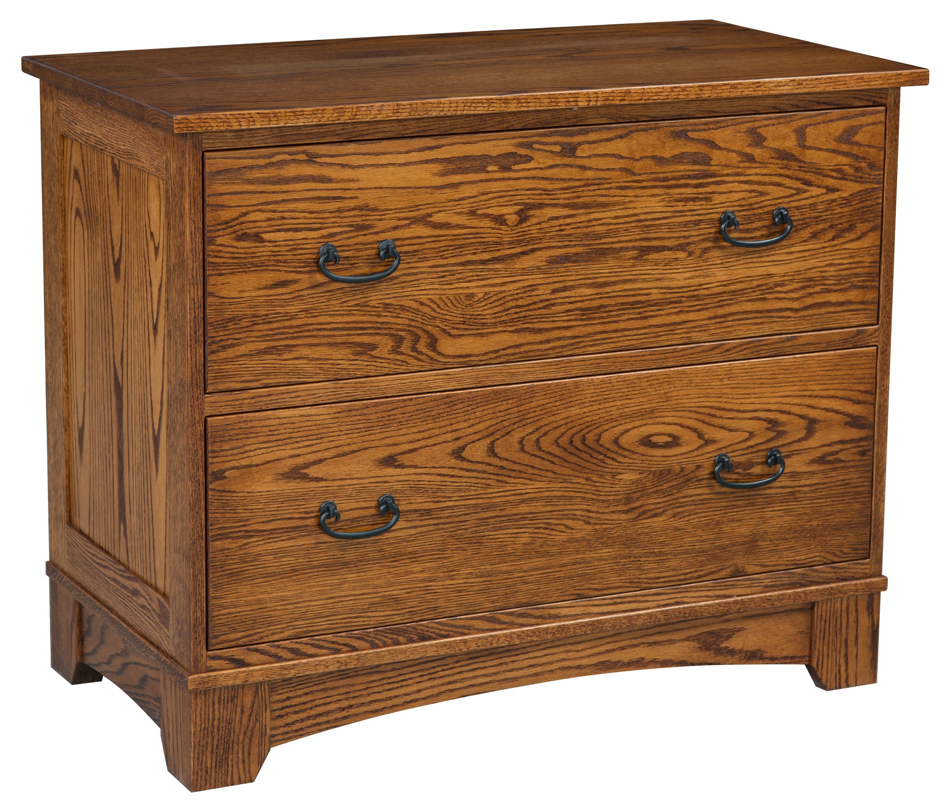 The Noble Mission Two Drawer Lateral File Cabinet boasts the stately looks and user-friendly features to make it the best choice for your upscale home office. Check out the clean lines, flush drawers, recessed side panels and black Mission hardware. The drawers open full-extension for easy access to all the files inside. While the dovetail drawer joints excel in strength. What’s more, the anti-tipping drawer system ensures the unit will not tip over. And the adjustable hanging file rails lets you store legal and/or letter-size files. Plus, available locks keep your documents secure. Amish cabinetmakers — the best in the Midwest — build the cabinet. Also, they use top hardwoods like cherry, oak and maple. No wonder the piece is so sturdy and heirloom-quality! Ready to order? Click the “Customize this product” button below. Then, fill out the customizing fields. Or call 877-357-2106.