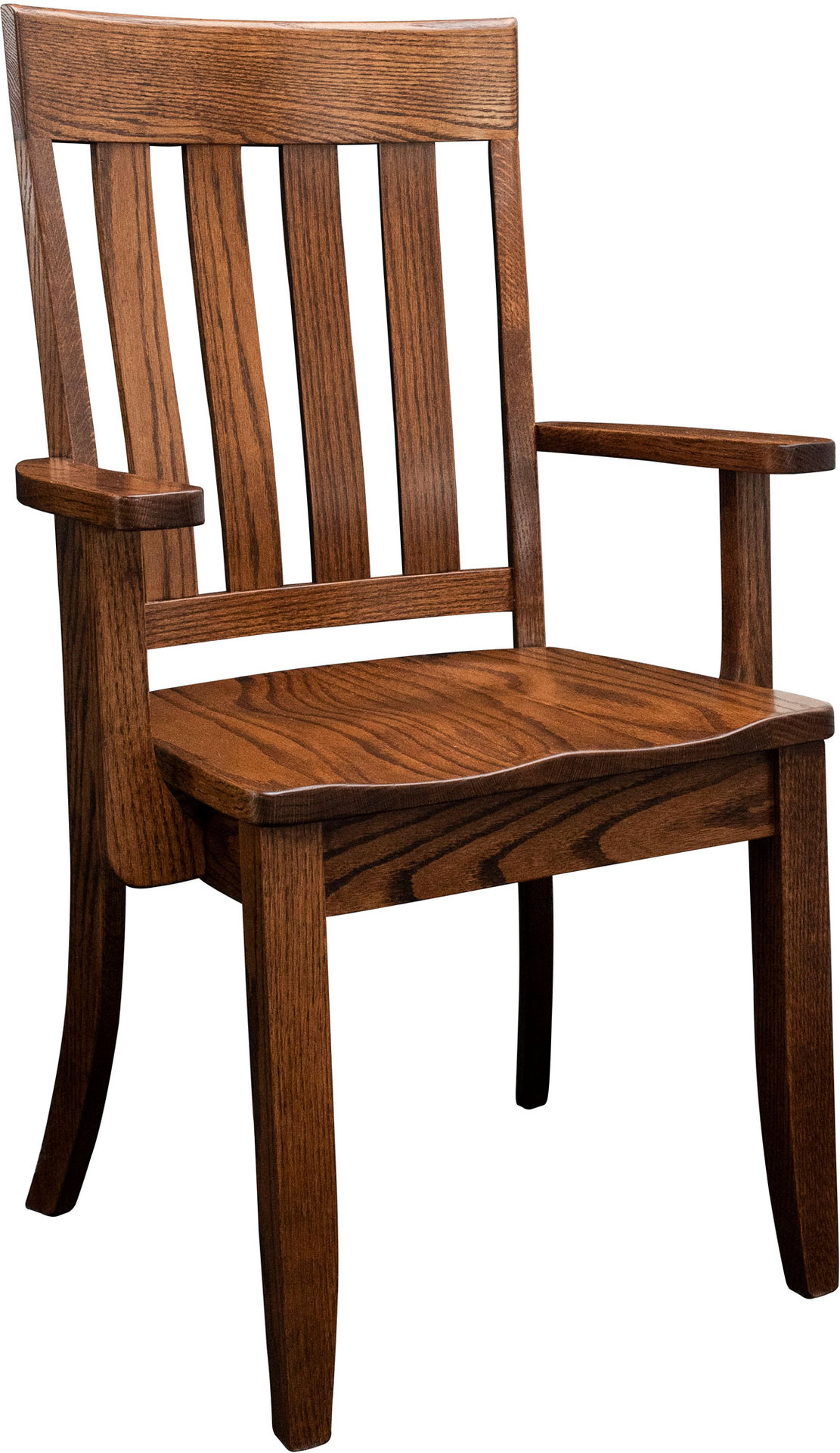 Eye-catching slats, clean lines and tapered feet give the Oakland Dining Chair its classic look. Making it a great choice for your dining room. The saddle scoop seat with Mission edge enhances comfort. Want even more comfort? Ask for an upholstered seat, finished in fabric or leather. Also, you can order your chairs as side chairs and/or armchairs. The chair’s construction makes it really stand out. Because Amish cabinetmakers — the best in the Midwest — build the chair. And, they use top hardwoods like cherry, maple and oak (shown with Light Asbury Stain). No wonder the chair is so sturdy, it’s heirloom-quality! Ready to order? Click the “Customize this product” button below. Then, fill out the customization fields. Or call 877-357-2106.