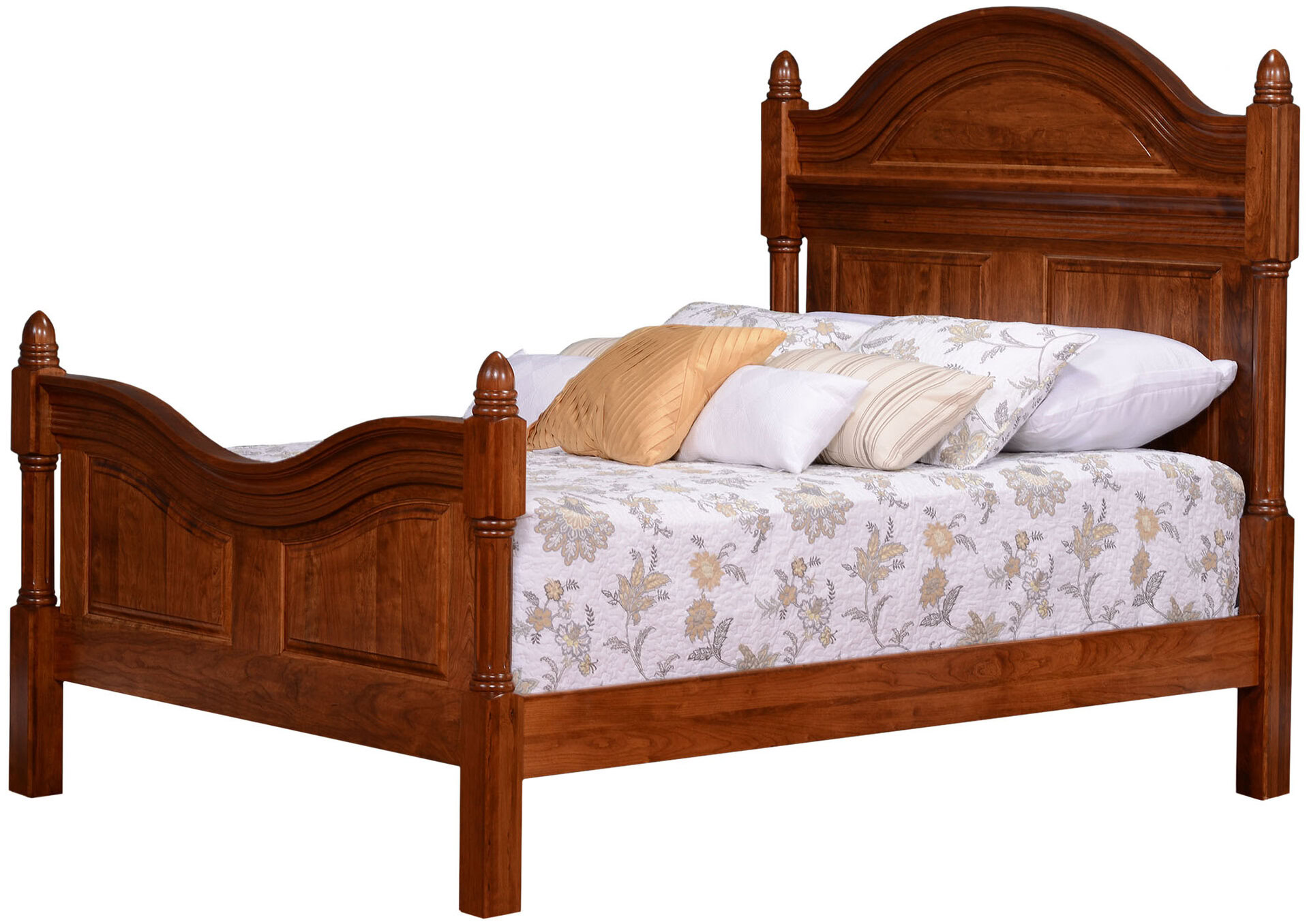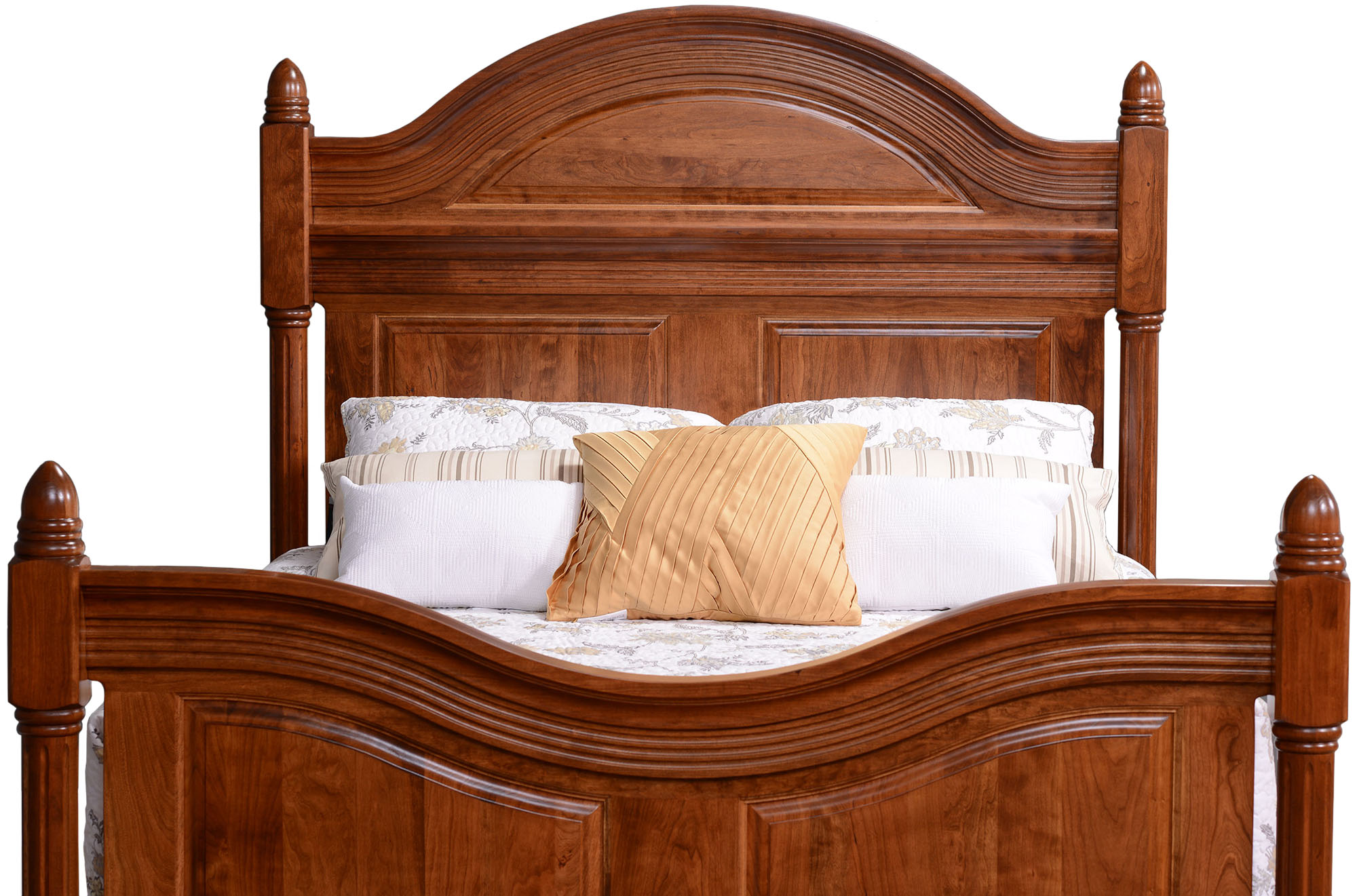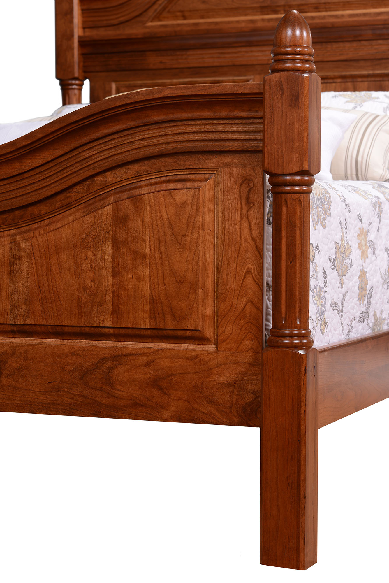 The Olympia Bed is elegant and features an absolutely amazing design. Construct the bed as a King, Queen, Full, or Twin size bed. The bed features beautifully fluted posts. The posts and caps are turned with incredible detail. The headboard is contoured with a rolling scallop and reeded crown. The footboard has a gorgeously inverted arch.