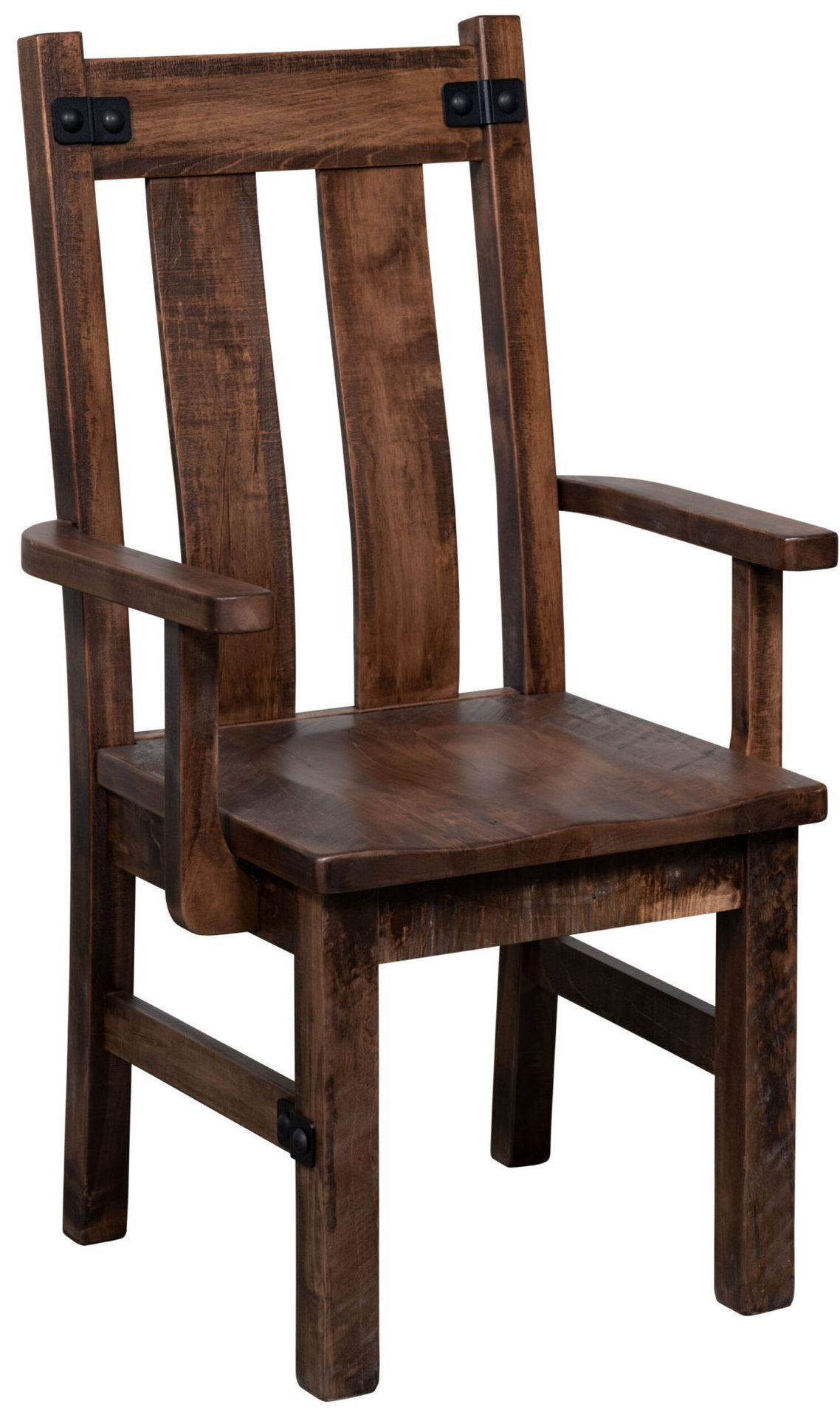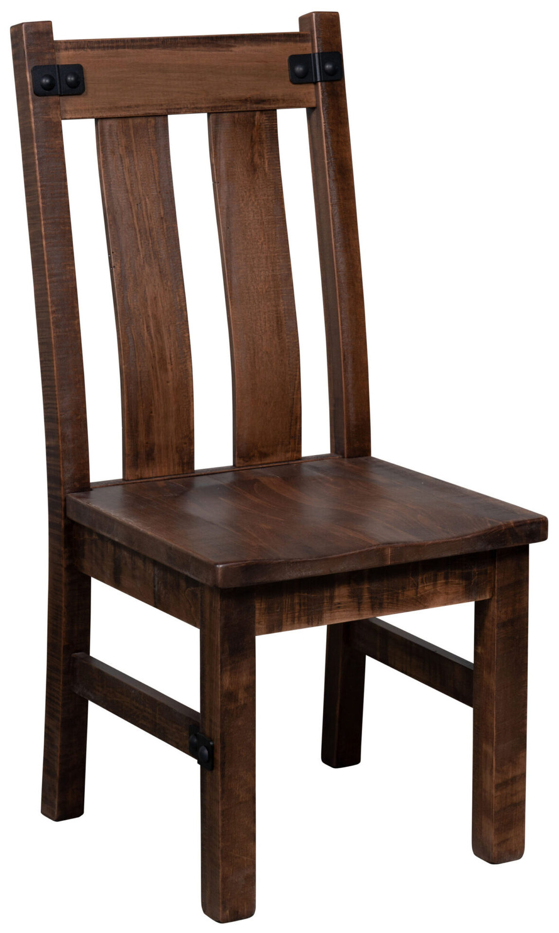 A rustic chair with a refined twist. That’s the Orewood Style Chair. Indeed, the rough-sawn wormy maple cabinetry, straightforward design and black metal bracket accents enhance the rustic vibe. While the smooth, curved slats and scooped seat add a comfortable edge. Amish cabinetmakers – the best in the Midwest — build the chair from top hardwoods. No wonder it’s is so great-looking, sturdy and heirloom-quality! You can order the chair with the wood seat. Or choose an upholstered seat finished in fabric or leather. Ready to order? Click the “Customize this product” button below. Then, fill out the customizing fields. Or call 877-357-2106.