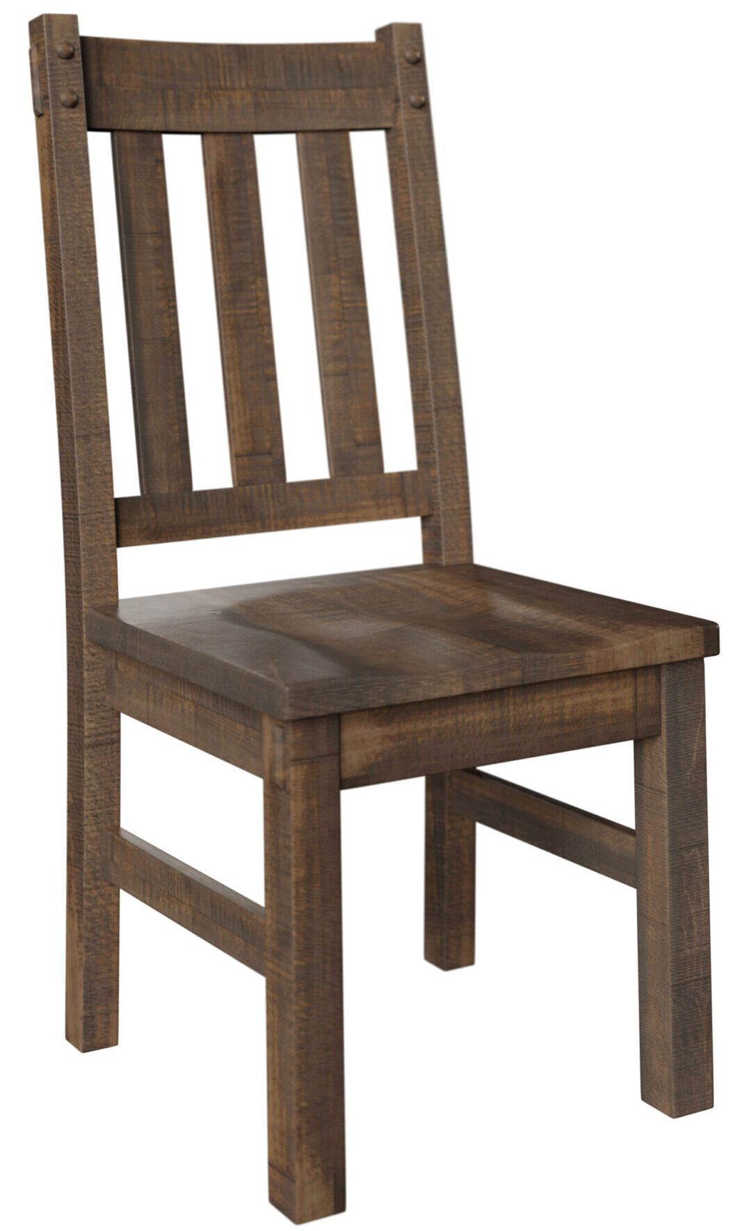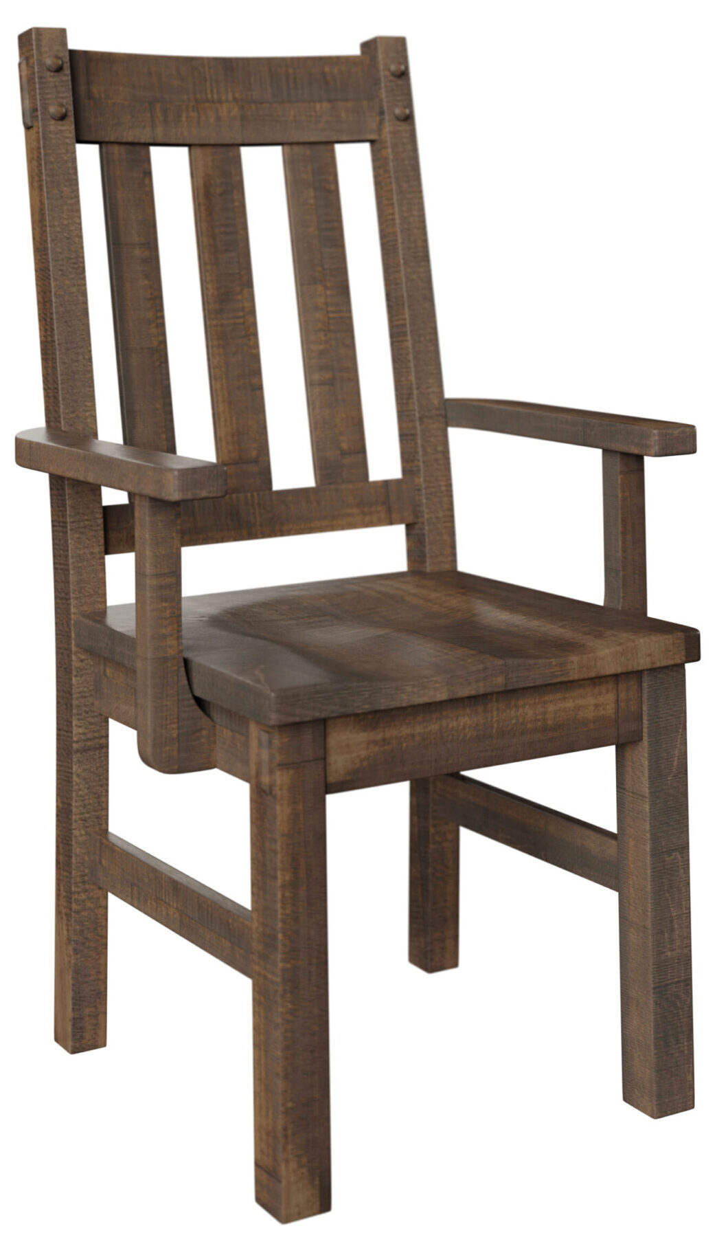 If you like rustic furniture, you’ll love the Pasadina Style Chair. We build it from rough-sawn wormy maple (shown with FC 42000-2 Almond Stain). Also, check out the dowels and exposed tenons. We offer the piece as a side chair and an armchair. So, you can surround your dining table with one – or both – chair designs. Also, you can choose the comfortable saddle scoop seat. Or go for even more comfort with the upholstered seat finished in fabric or leather. Amish cabinetmakers – the best in the Midwest — build the chair from solid hardwoods. No wonder the chair is so beautiful, sturdy and heirloom-quality! Ready to order? Click the “Customize this product” button below. Then, fill out the customizing fields. Or call 877-357-2106.