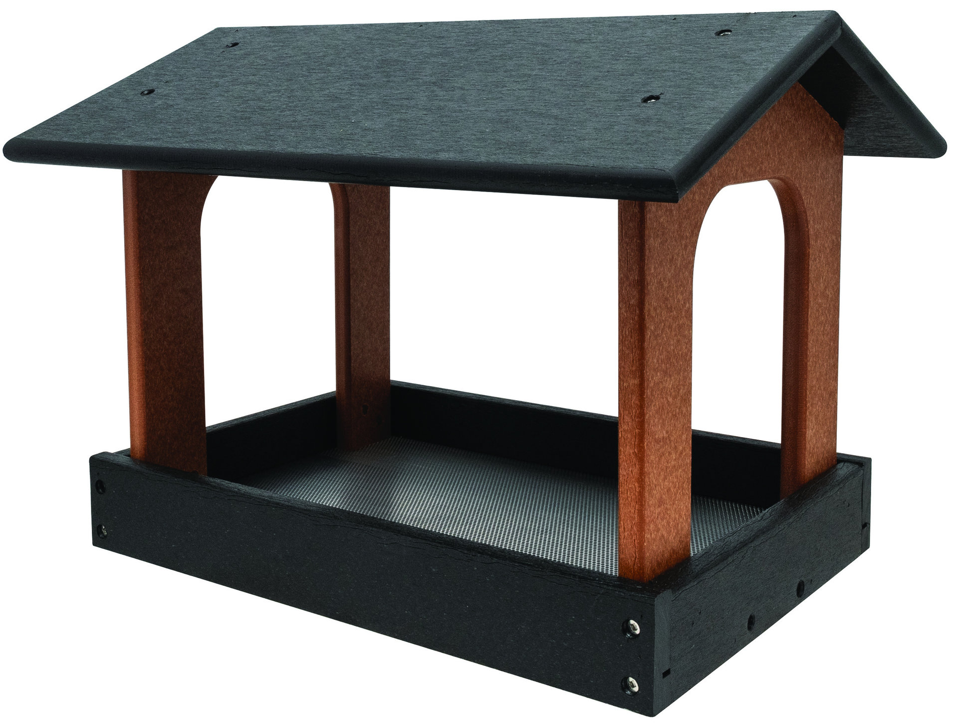 The Post Mounted Fly-By Feeder is ideally suited for your bird-watching site such as outside your window on in your garden. With its large, 15-inch by 11 1/4-inch size, the feeder provides perch space for lots of birds. Also, the aluminum screen makes a sturdy floor. Amish artisans build the feeder from 100% post-consumer recycled plastic plus stainless screws. So, the feeder is durable, resistant to termites — and needs little or no maintenance. Are you ready to order? Simply click the “Customize this product” button below. Then, fill out the open (blank) fields. Or call 877-357-2106 today.