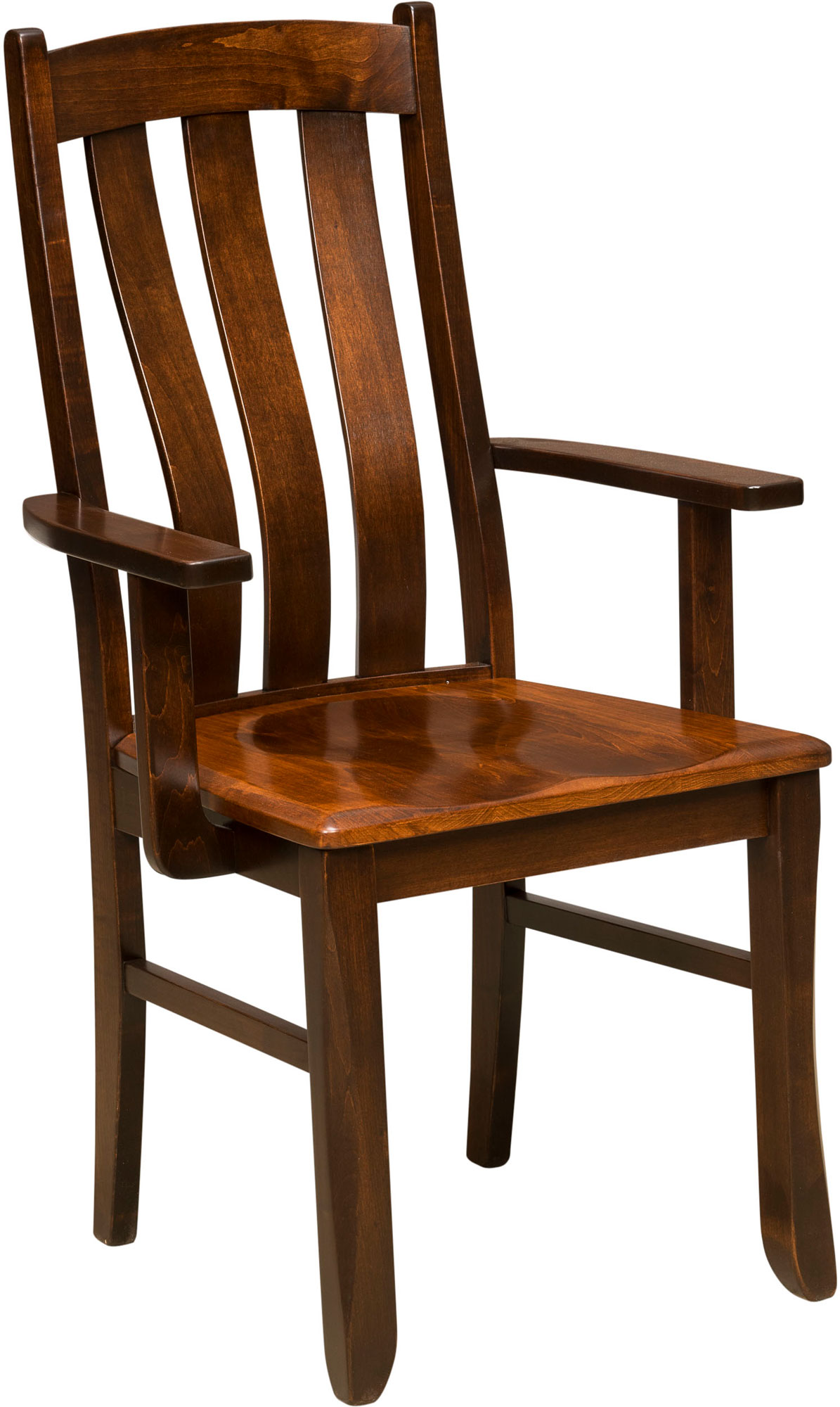 With its tall backrest and curved theme in the slats and legs, plus its superior Amish cabinetry, the Preston Dining Chair is the ideal pick for any formal or informal dining room. The saddle scoop seat adds comfort. Also, we offer the unit in your choice of side chair and/or armchair. Amish cabinetmakers — the best in the Midwest — build the chair. And they use top hardwoods like maple, cherry and oak. No wonder the piece is so great-looking, sturdy and heirloom-quality! Ready to order? Click the “Customize this product” button below. Then, fill out the customization fields. Or call 877-357-2106.