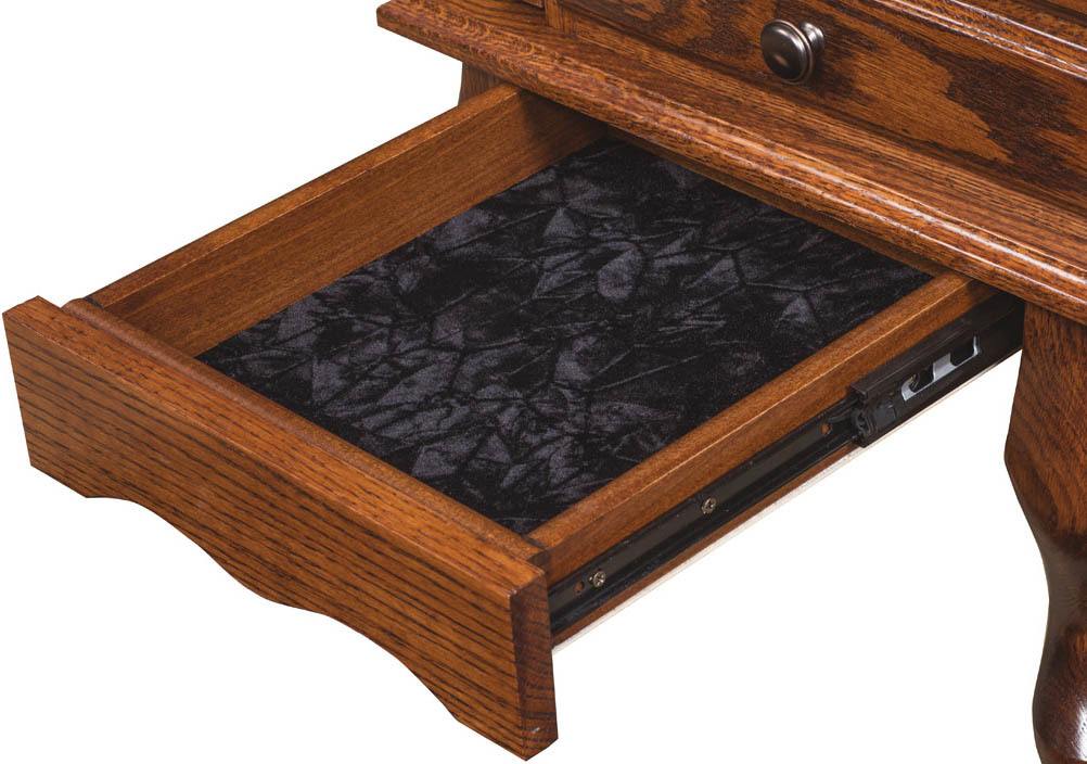 The Queen Anne Jewelry Dressing Table offers a perfect balance of beauty and utility. Each drawer provides an organizational tool or simple velvet lining, so you can store your jewelry easily. We even have an option for a hidden drawer to help you conceal your most prized possessions. With a timeless style and high-quality materials, this vanity will stand the test of time.