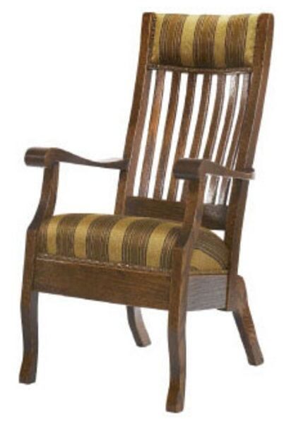 The Queen Lounge Chair has a padded seat and headrest. The stationary chair has steam bent slats in the back. The curved arms are designed for optimal support. The padded headrest is at the perfect height for support. Also, nail head trim accents the seat and headrest. Pad the chair out of fabric or leather to fit any decor. Customize the solid wood frame with a variety of wood and stain choices.