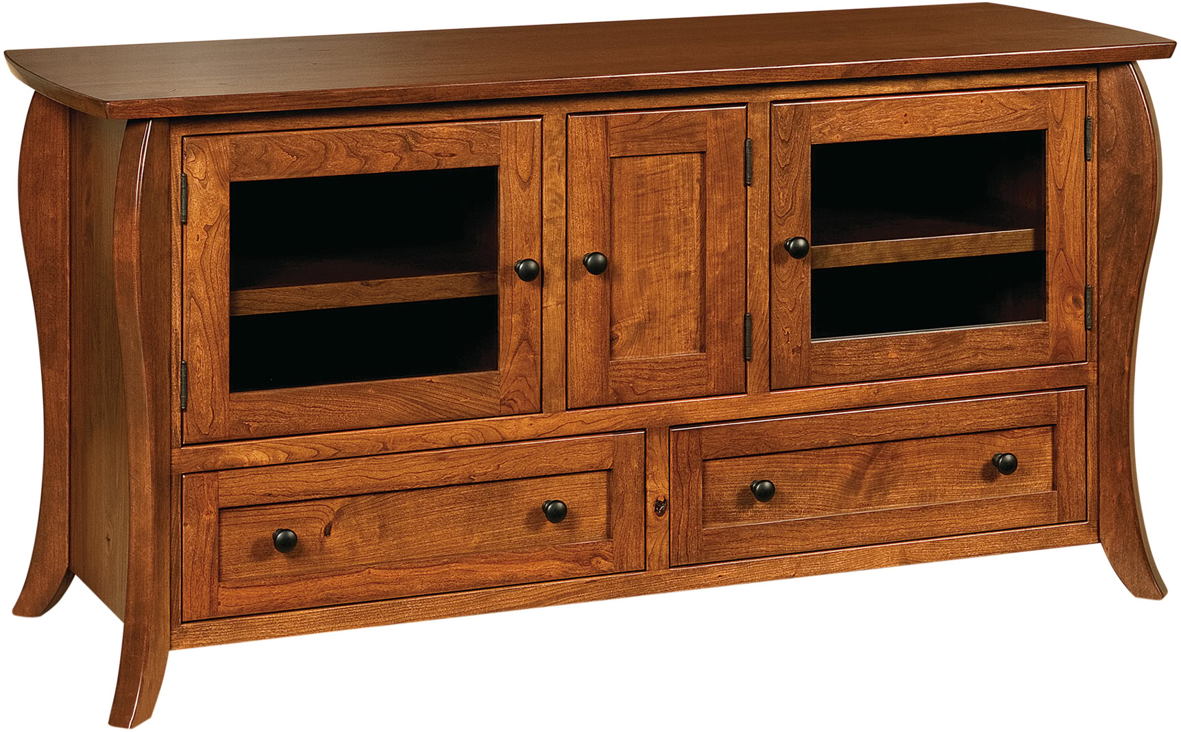 The Quincy TV Cabinets have curved lines that will bring a classic elegance to any space. The stand provides ample storage space, so you have a perfect centralized location for all of your media accessories and components. Also, the drawers and doors boast soft-close slides and hinges, bringing a sense of luxury as you gently nudge them shut without a sound. The doors feature lightly smoked glass, so you can still maintain control of your devices with your remote. Available in three sizes, the Quincy TV Cabinets can be customized to meet your needs.