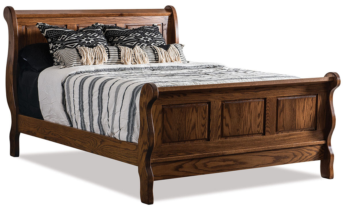 The Raised Panel Classic Sleigh Bed integrates elegant raised panels between posts that are reminiscent of the flowing curves of a sleigh. Making it a great choice for your bedroom. Amish cabinetmakers – the best in the Midwest – build the bed. And they use hardwoods like maple, oak and cherry. No wonder the bed is so great-looking, sturdy – and heirloom-quality! Ready to order? Click the “Customize this product” button below. Then, complete the customization fields. Or call 877-357-2106.